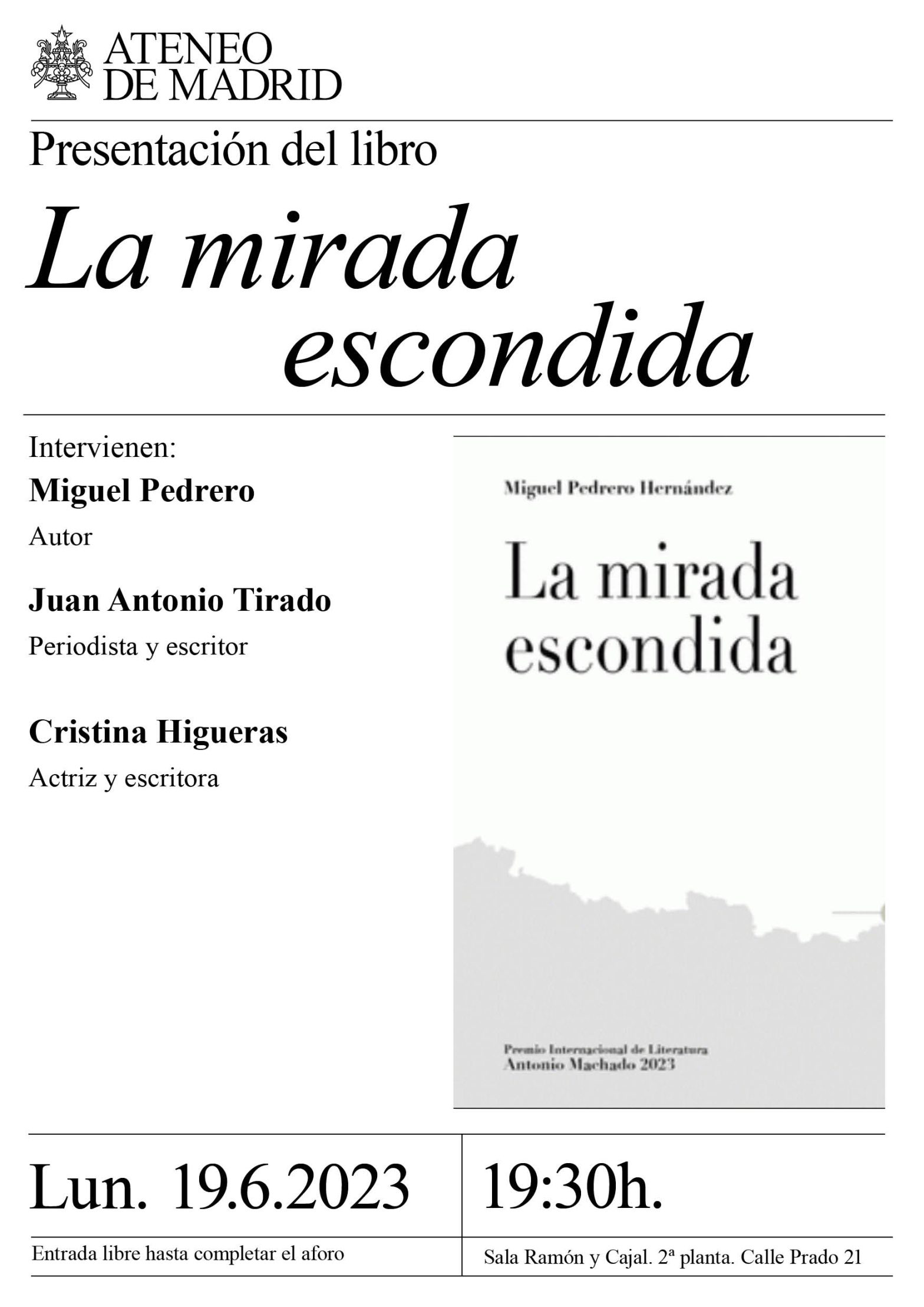Intervienen: Miguel Pedrero, autor; Juan Antonio Tirado, periodista y escritor; Cristina Higueras, actriz y escritora. Sala Ramón y Cajal. 19:30h.