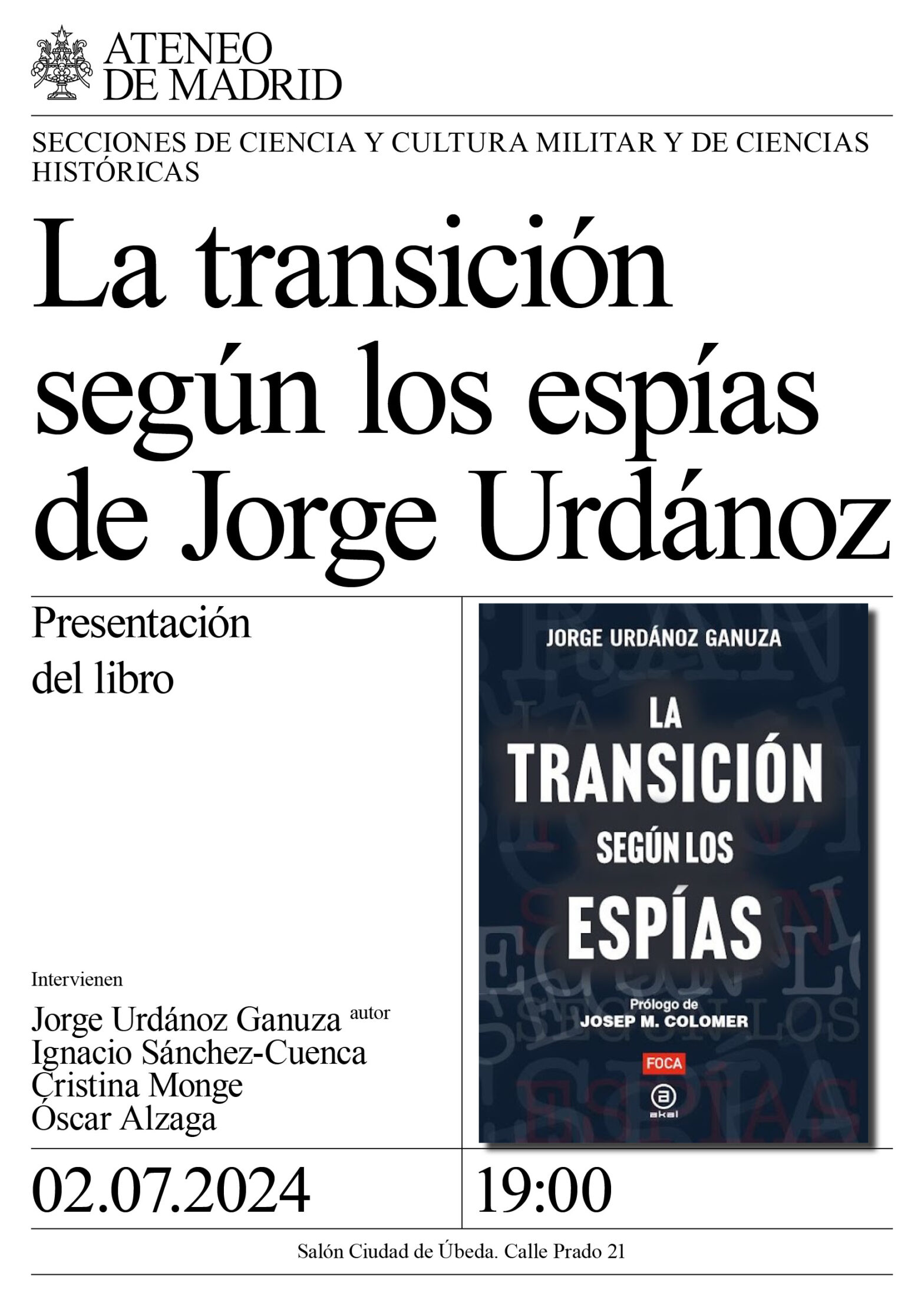 Secciones de Ciencia y Cultura Militar y de Ciencias Históricas. Intervienen: Jorge Urdánoz Ganuza, autor; Ignacio Sánchez-Cuenca, catedrático de Ciencia Política; Cristina Monge, politóloga y presidenta de +Demo; y Óscar Alzaga, catedrático de Derecho Constitucional y diputado Constituyente. Salón Ciudad de Úbeda. 19:00h.
