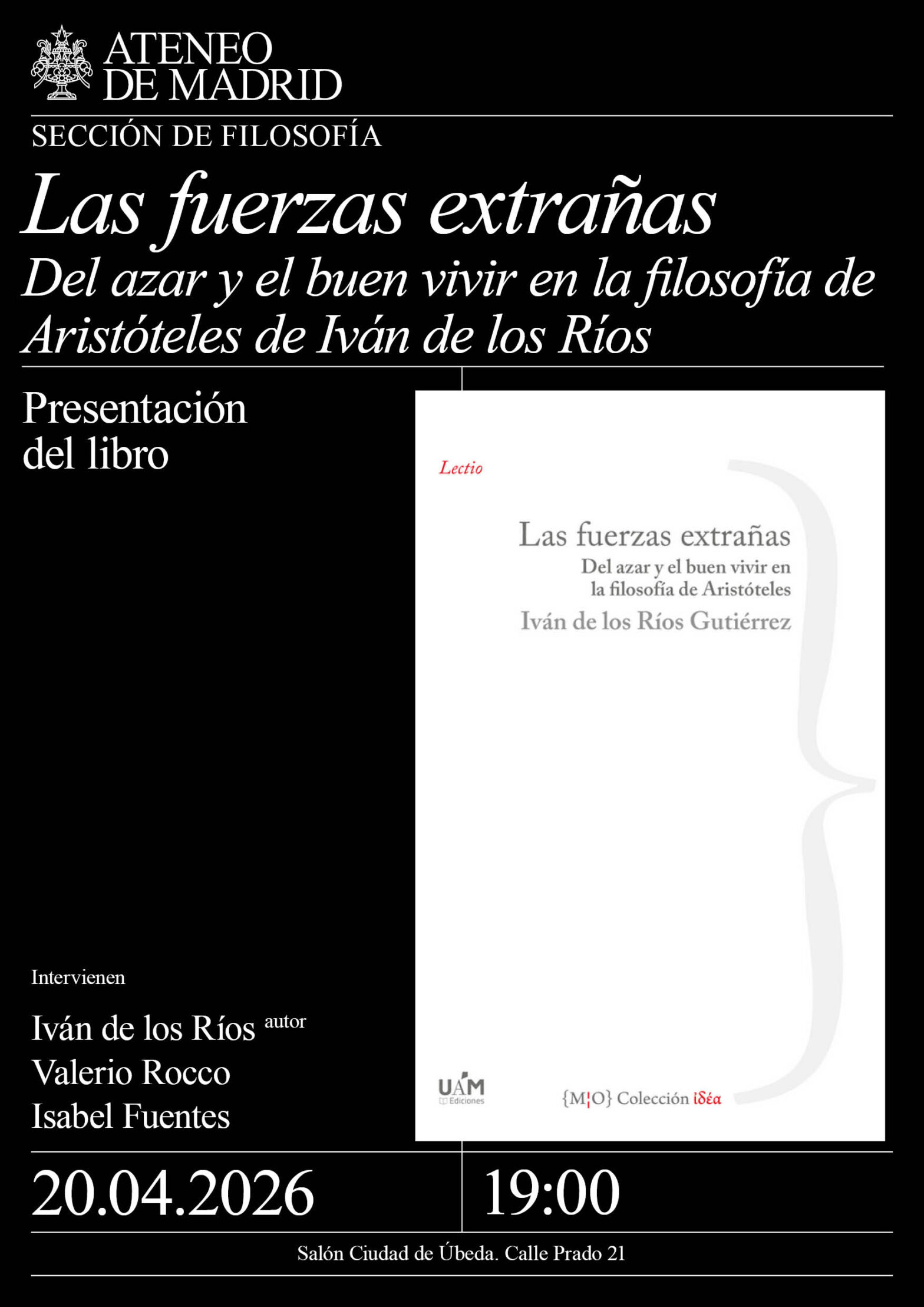 Presentación del libro «Las fuerzas extrañas. Del azar y el buen vivir en la filosofía de Aristóteles de Iván de los Ríos»