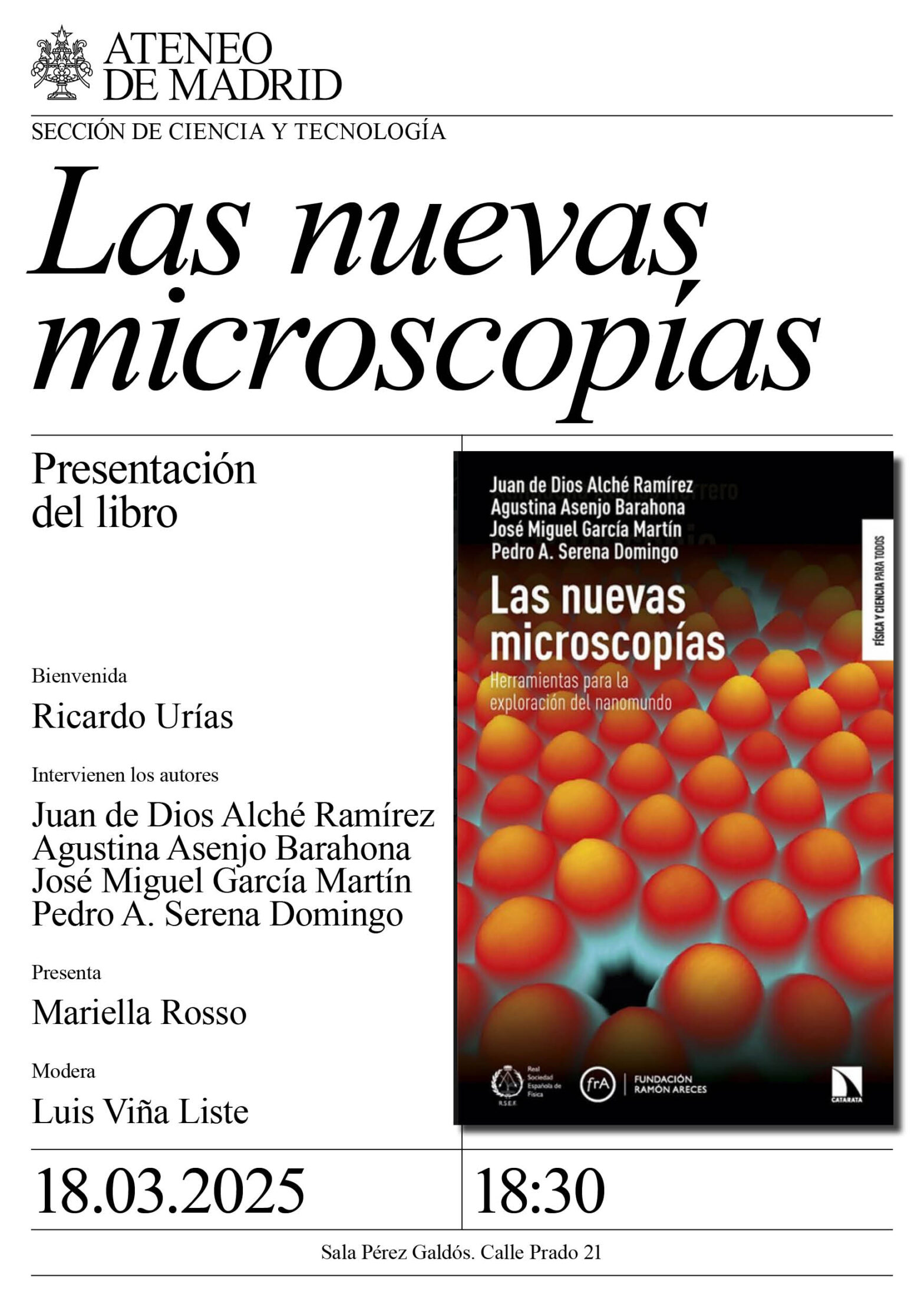 Sección de Ciencia y Tecnología. Bienvenida Ricardo Urías. Intervienen: Agustina Asenjo Barahona, ICMM-CSIC; José Miguel García Martín, IMN-CSIC; Juan de Dios Alché Ramírez, EEZ-CSIC y presidente de la Sociedad de Microscopía de España (SME); y Pedro A. Serena Domingo, ICMM-CSIC. Presenta Mariella Rosso, responsable de prensa de la Editorial La Catarata. Modera Luis Viña Liste, presidente de la Real Sociedad Española de Física, RSEF. Sala Pérez Galdós. 18:30h.