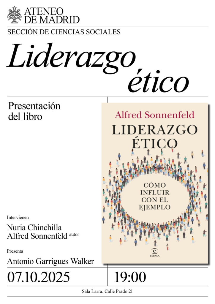 Sección de Ciencias Sociales. Intervienen: Nuria Chinchilla, Cátedra Mujer y Liderazgo, IESE Business School y Alfred Sonnenfeld, autor, doctor en Medicina y Teología, profesor UNIR. Presenta: Antonio Garrigues Walker, presidente Fundación Garrigues. Sala Larra. 19:00h.
