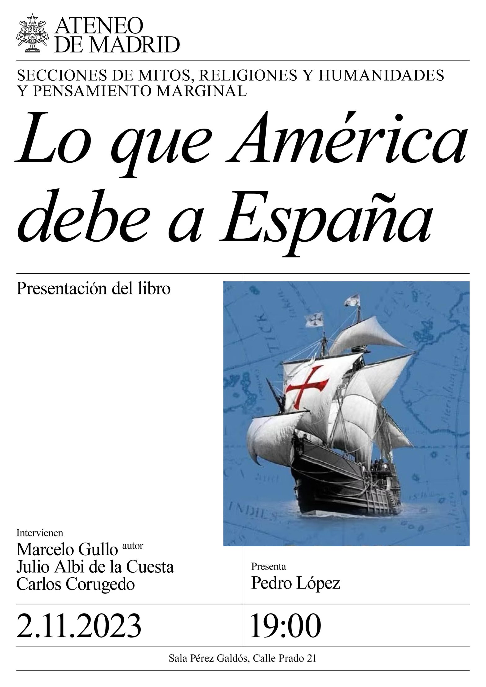 Intervienen: Marcelo Gullo, autor. Julio Albi de la Cuesta, embajador. Carlos Corugedo, experto en relaciones Internacionales. Presenta: Pedro López. Sala Pérez Galdós. 19h.
