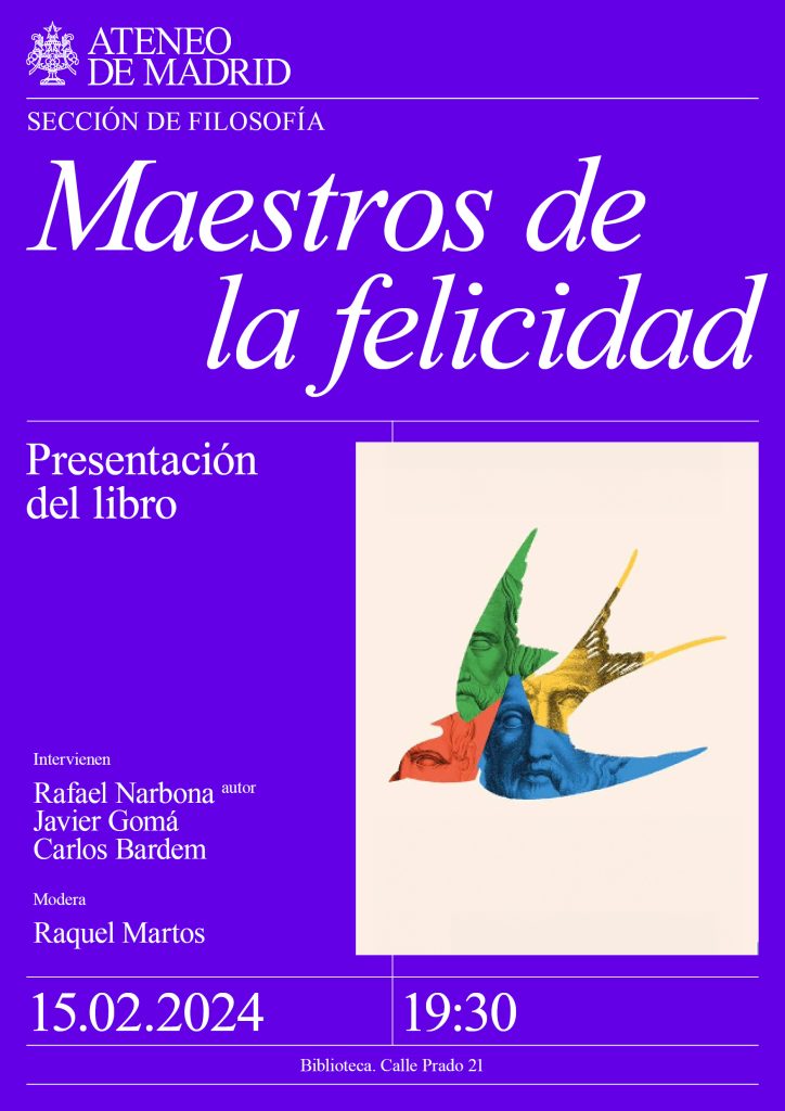 Sección de Filosofía. Intervienen: Rafael Narbona, autor; Javier Gomá y Carlos Bardem. Modera: Raquel Martos. Biblioteca. 19:30h.