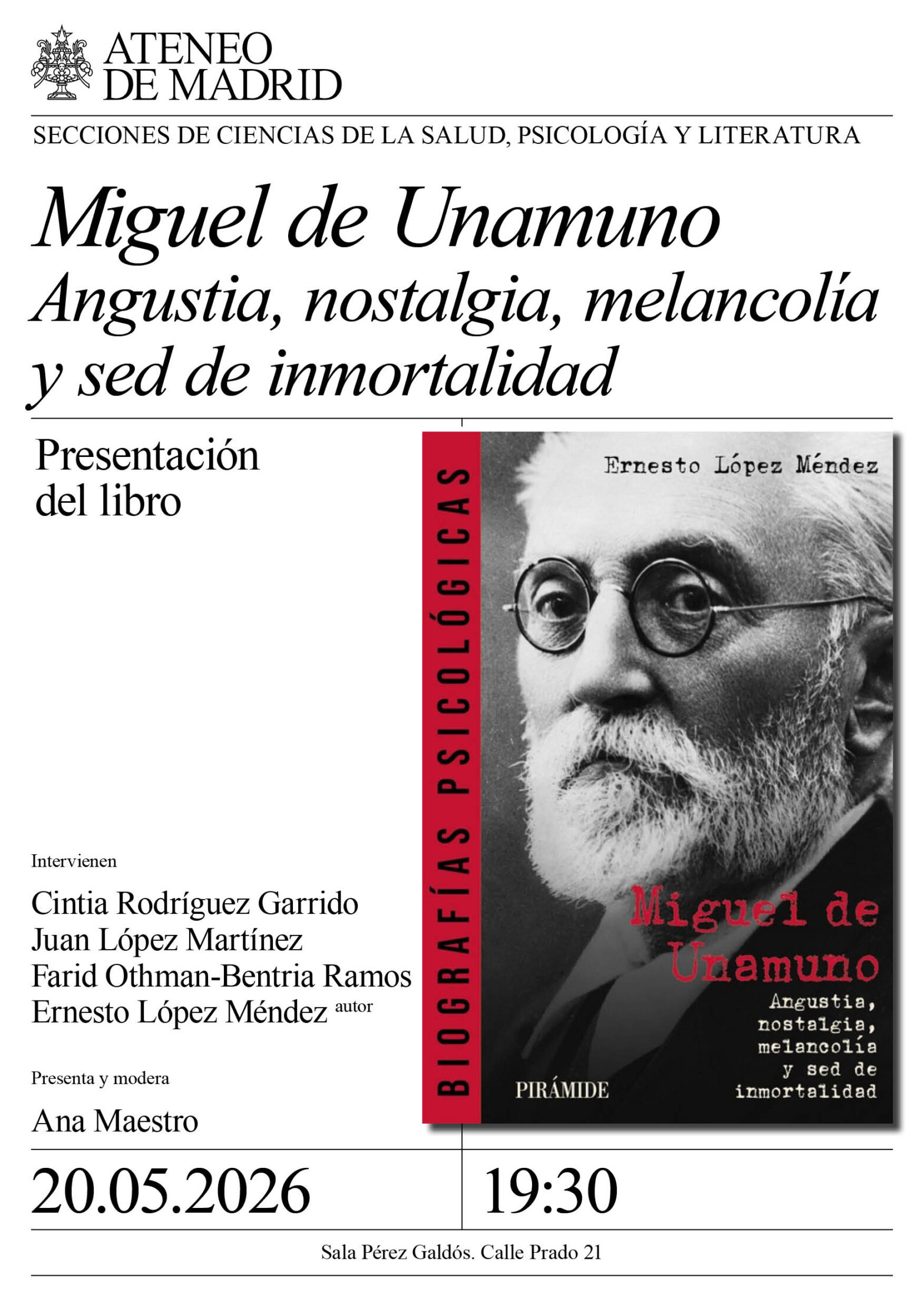 Presentación del libro “Miguel de Unamuno. Angustia, nostalgia, melancolía y sed de inmortalidad”