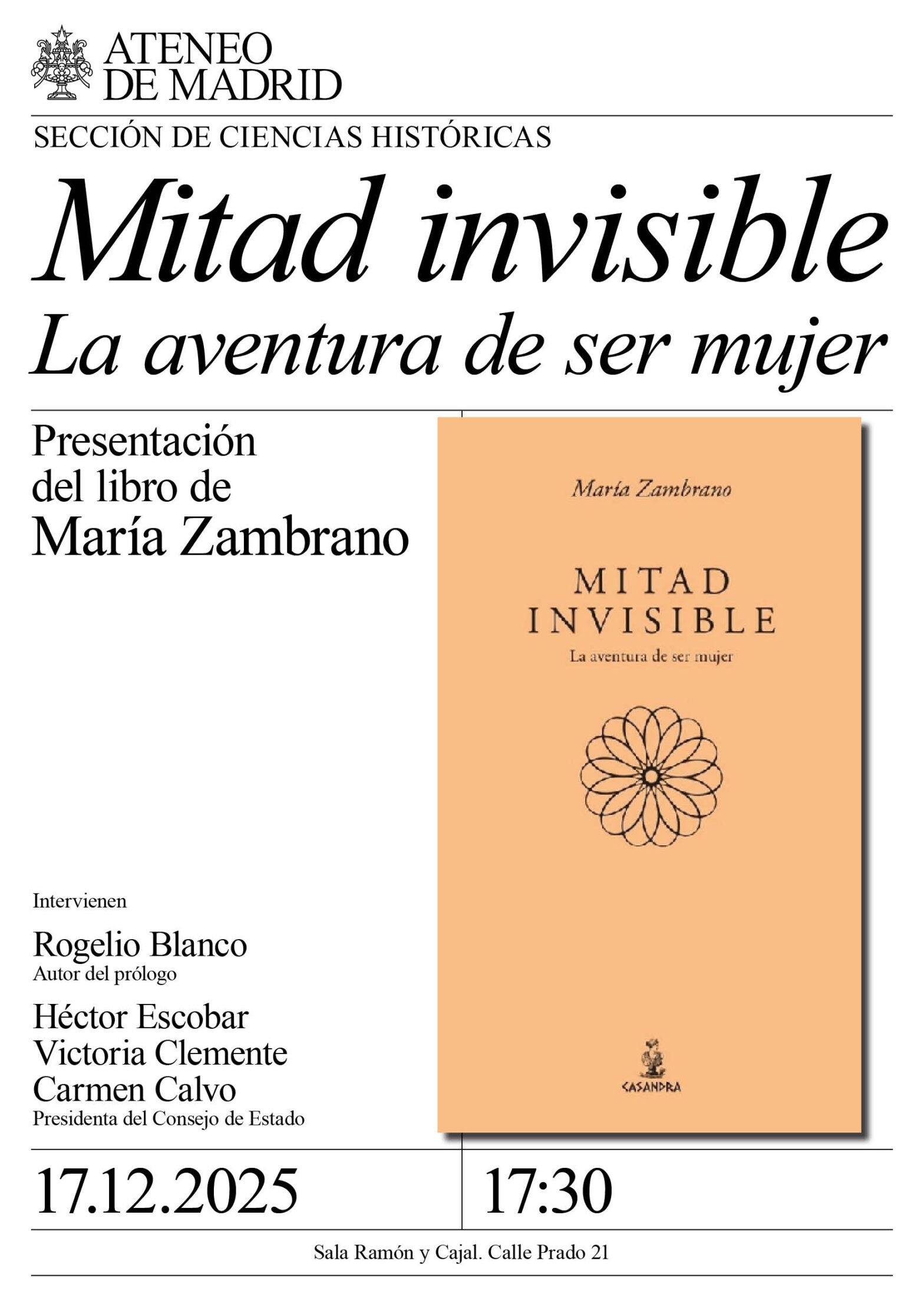Presentación del libro «Mitad invisible. La aventura de ser mujer», de María Zambrano
