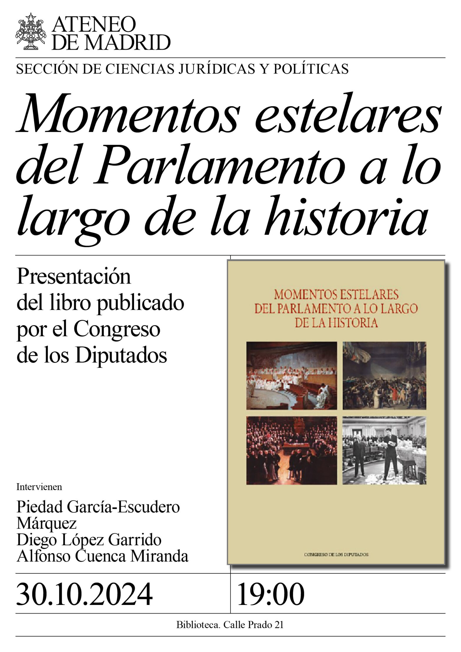 Sección de Ciencias Jurídicas y Políticas. Publicado por el Congreso de los Diputados en 2024. Intervienen: Piedad García-Escudero Márquez, letrada de las Cortes Generales, catedrática de Derecho Constitucional, coautora; Diego López Garrido, letrado de las Cortes Generales, catedrático de Derecho Constitucional; y Alfonso Cuenca Miranda, letrado de las Cortes Generales, coordinador de la obra. Biblioteca. 19:00h.