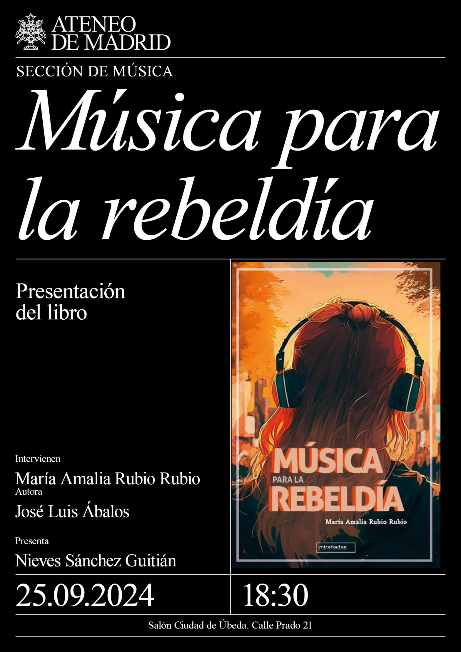 Sección de Música. Intervienen: María Amalia Rubio Rubio, autora y José Luis Ábalos. Presenta: Nieves Sánchez Guitián. Salón Ciudad de Úbeda. 18:30h.