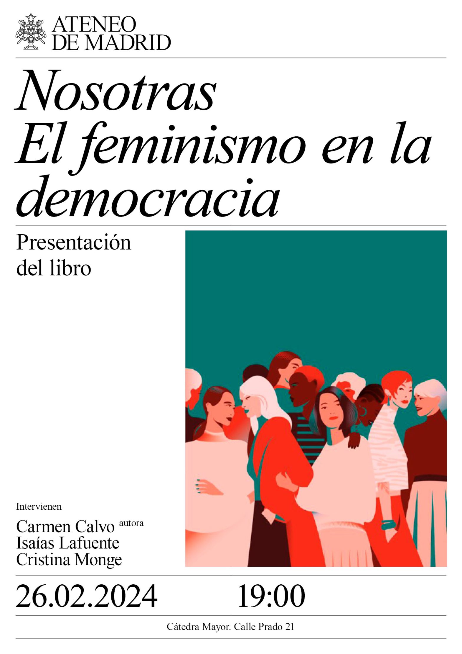 Intervienen: Carmen Calvo, autora; Isaías Lafuente, periodista; y Cristina Monge, politóloga. Cátedra Mayor. 19:00h. Nota de prensa.