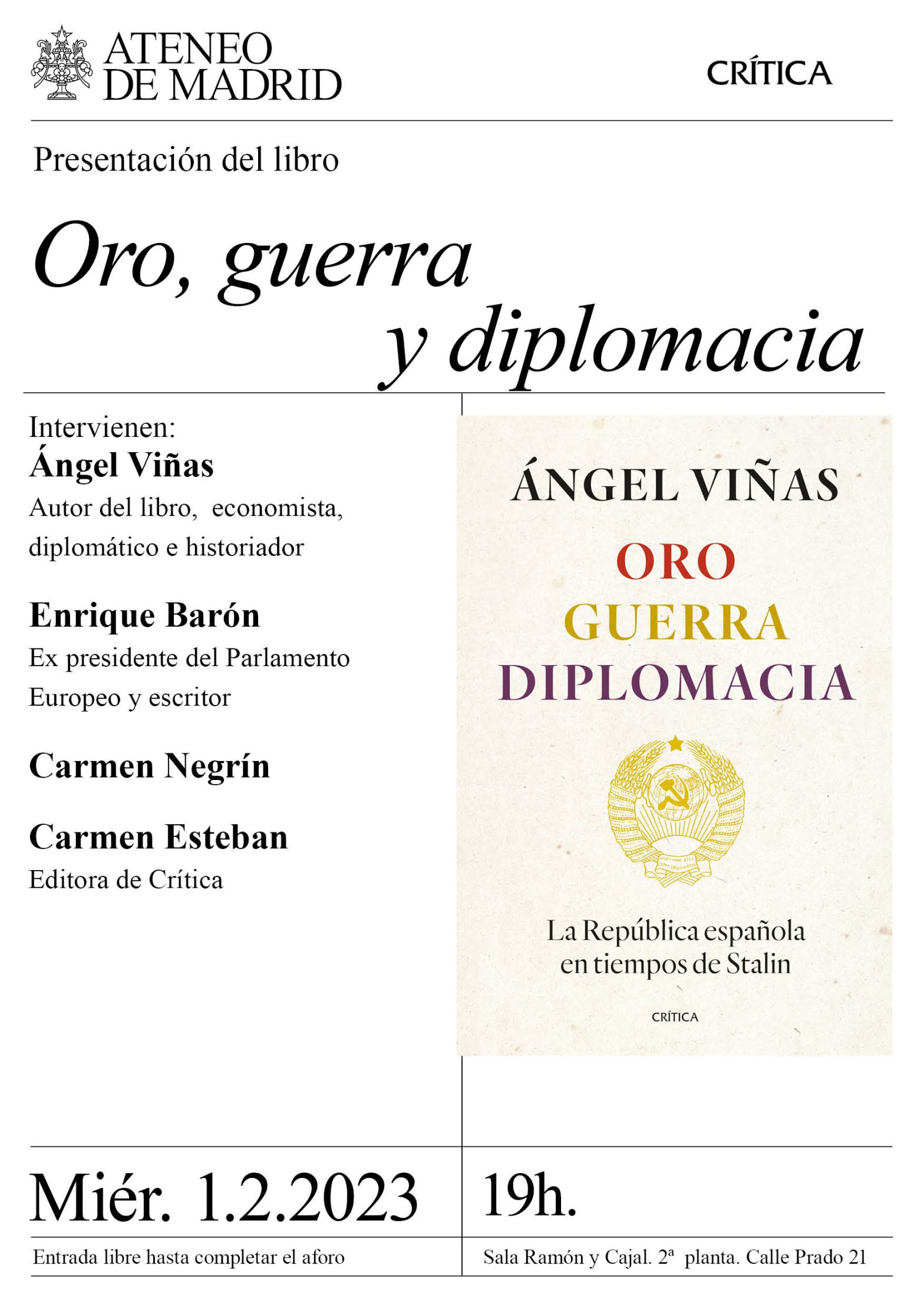 De Ángel Viñas. Intervienen: Ángel Viñas, autor del libro, economista, diplomático e historiador; Enrique Barón, ex presidente del Parlamento Europeo y escritor; Carmen Negrín; Carmen Esteban, editora de Crítica. Sala Ramón y Cajal. 19h. Nota de prensa.