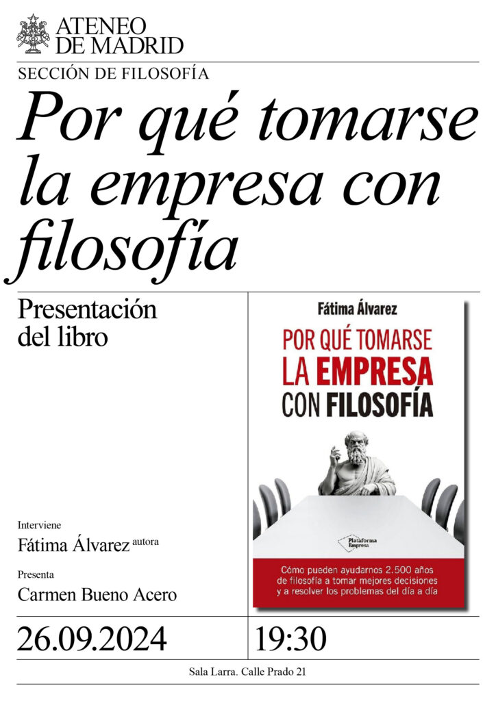 Sección de Filosofía. Interviene: Fátima Álvarez, autora. Presenta: Carmen bueno Acero. Sala Larra. 19:30h.