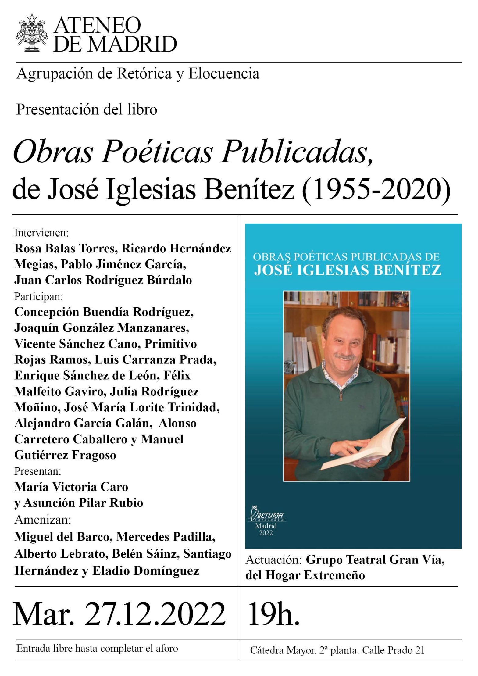 Presentación del libro Obras Poéticas Publicadas, de José Iglesias Benítez (1955-2020)