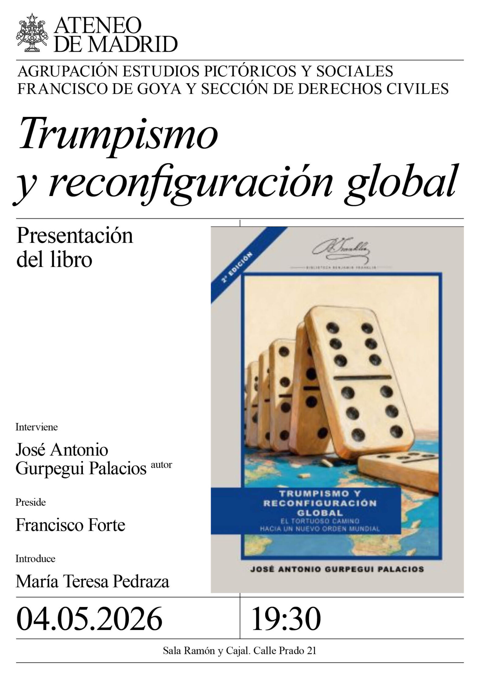 Agrupación Estudios pictóricos y sociales Francisco de Goya y Sección de Derechos Civiles. Interviene: José Antonio Gurpegui Palacios, autor, catedrático de la UHE, Universidad de Alcalá de Henares. Preside: Francisco Forte. Introduce: María Teresa Pedraza. Sala Ramón y Cajal. 19:30h.
