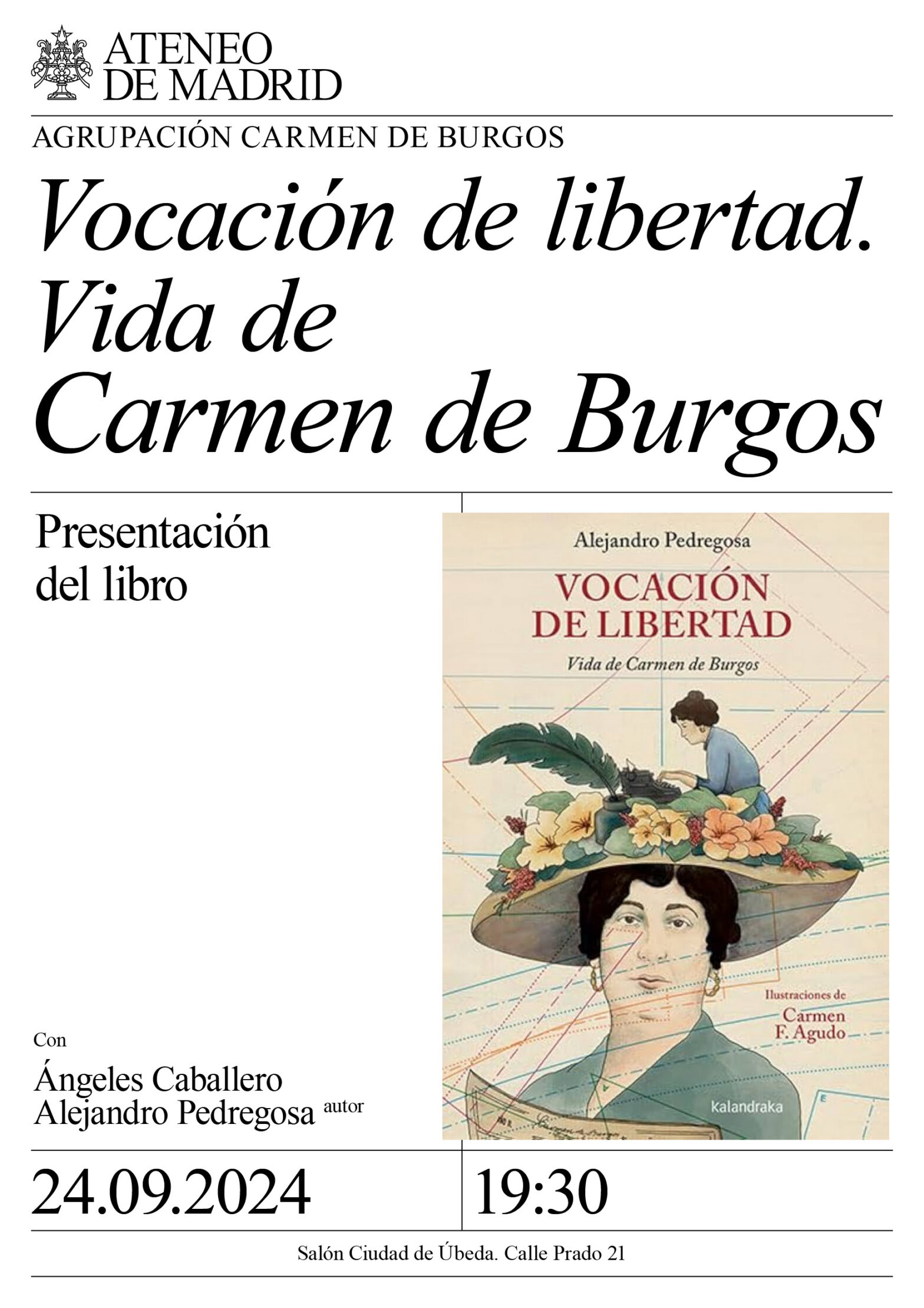 Agrupación Carmen de Burgos. Con Ángeles Caballero y Alejandro Pedregosa, autor. Salón Ciudad de Úbeda. 19:30h.