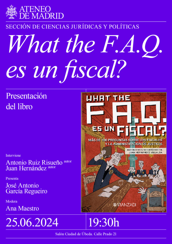 Sección de Ciencias Jurídicas y Políticas. Intervienen: Antonio Ruiz Risueño, autor y fiscal y Juan Hernández, autor, fiscal. Presenta: José Antonio García Regueiro. Modera: Ana Maestro. Salón Ciudad de Úbeda. 19:30h.