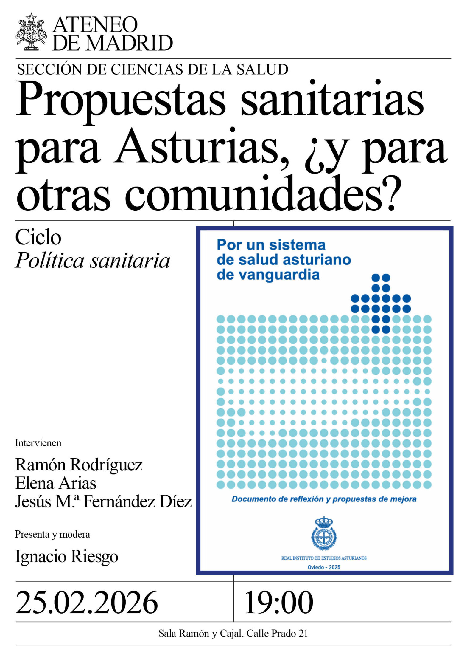 Sección de Ciencias de la Salud. Intervienen: Ramón Rodríguez, presidente de RIDEA; Elena Arias, exgerente del Servicio de Salud del Principado de Asturias; y Jesús M.ª Fernández Díez, médico y consultor sanitario. Presenta y modera: Ignacio Riesgo. Sala Ramón y Cajal. 19:00h.