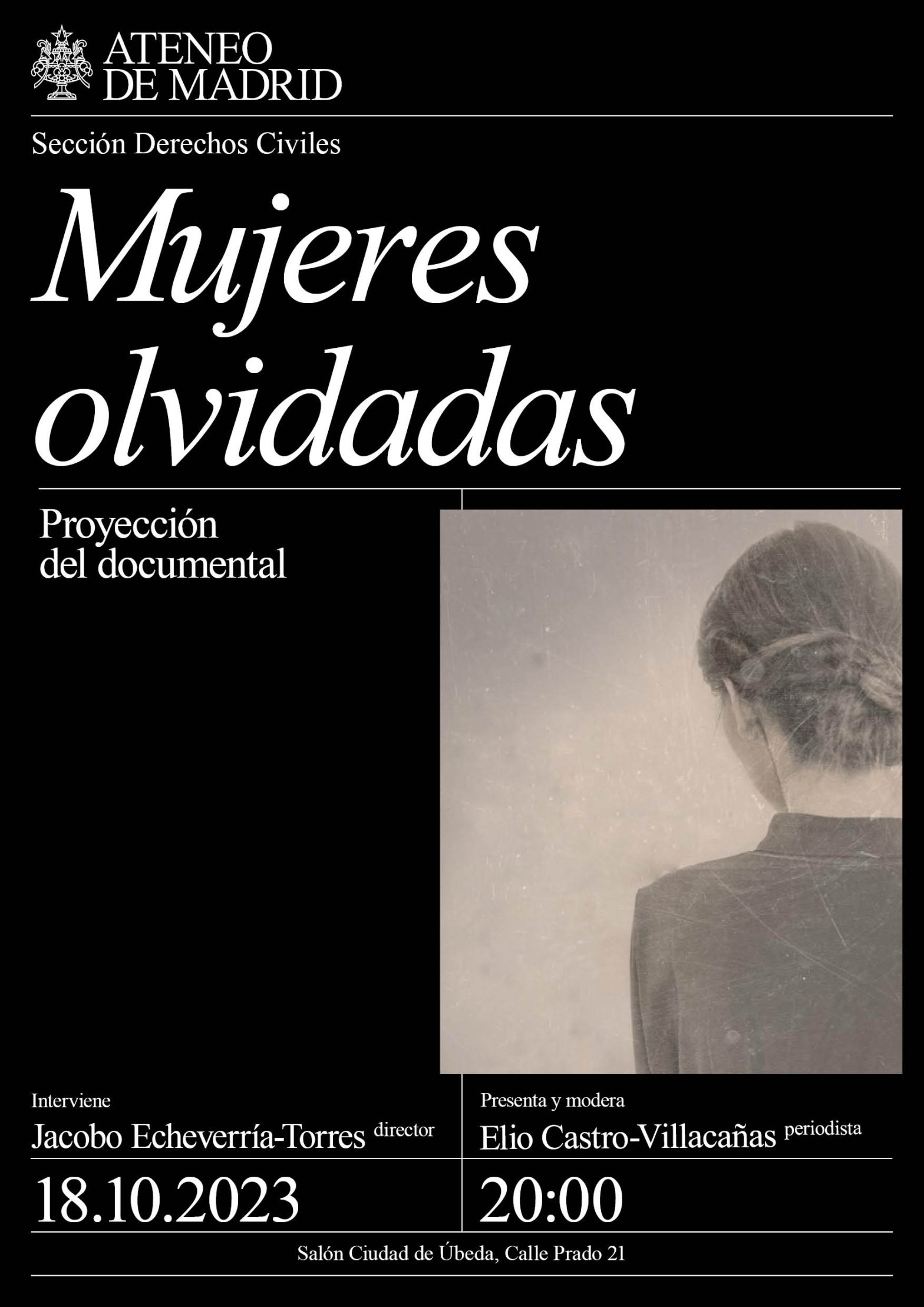 Sección de Derechos Civiles. Interviene: Jacobo Echeverría-Torres, director del documental. Presenta y modera: Elio Castro-Villacañas, periodista cinematográfico de la Cadena SER y Radio Nacional de España. Salón Ciudad de Úbeda. 20h.