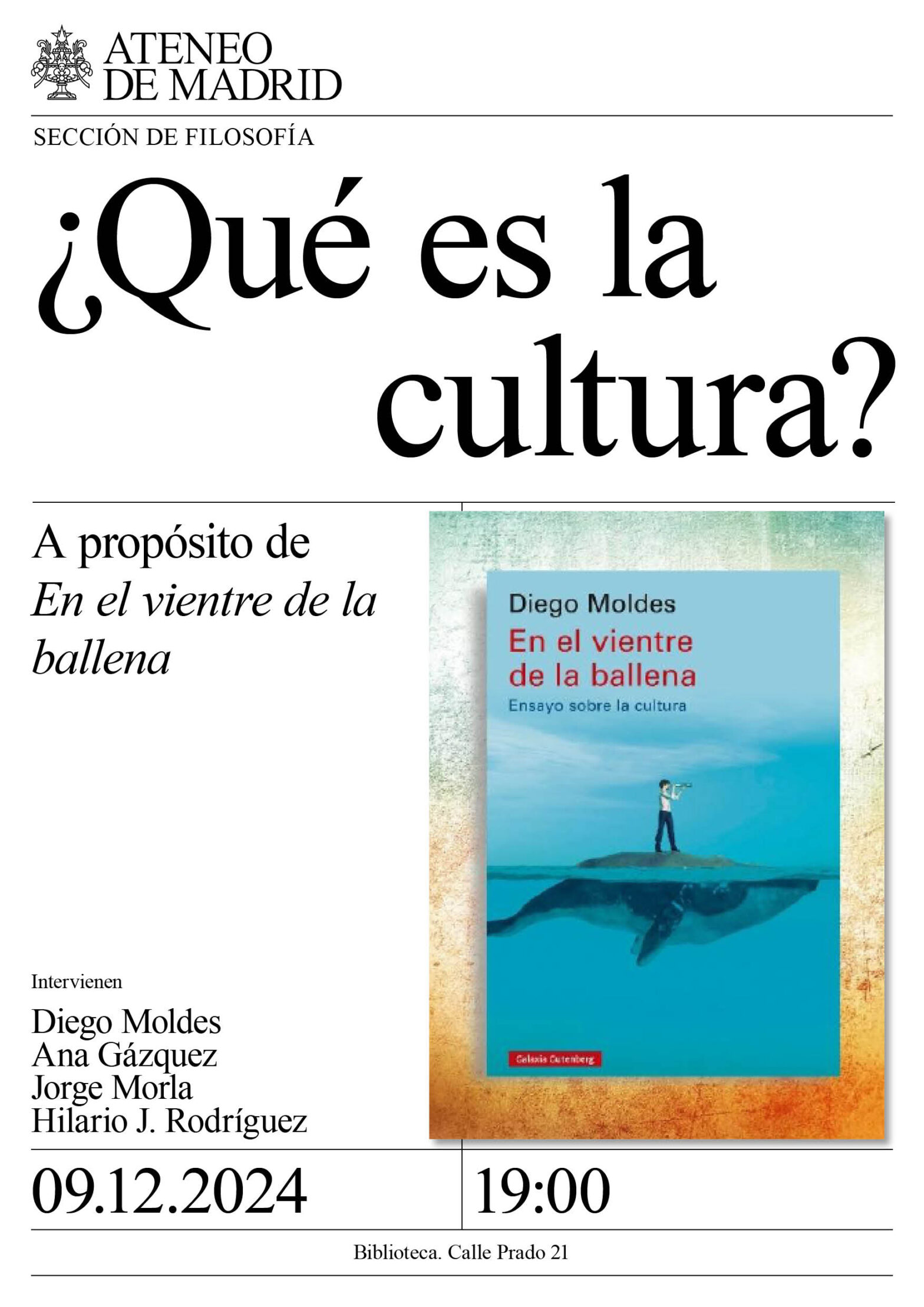 Sección de Filosofía. Intervienen: Diego Moldes, escritor; Ana Gázquez; Jorge Morla, periodista, sección de cultura de El país; y Hilario J. Rodríguez, filólogo y escritor. Biblioteca. 19:00h.