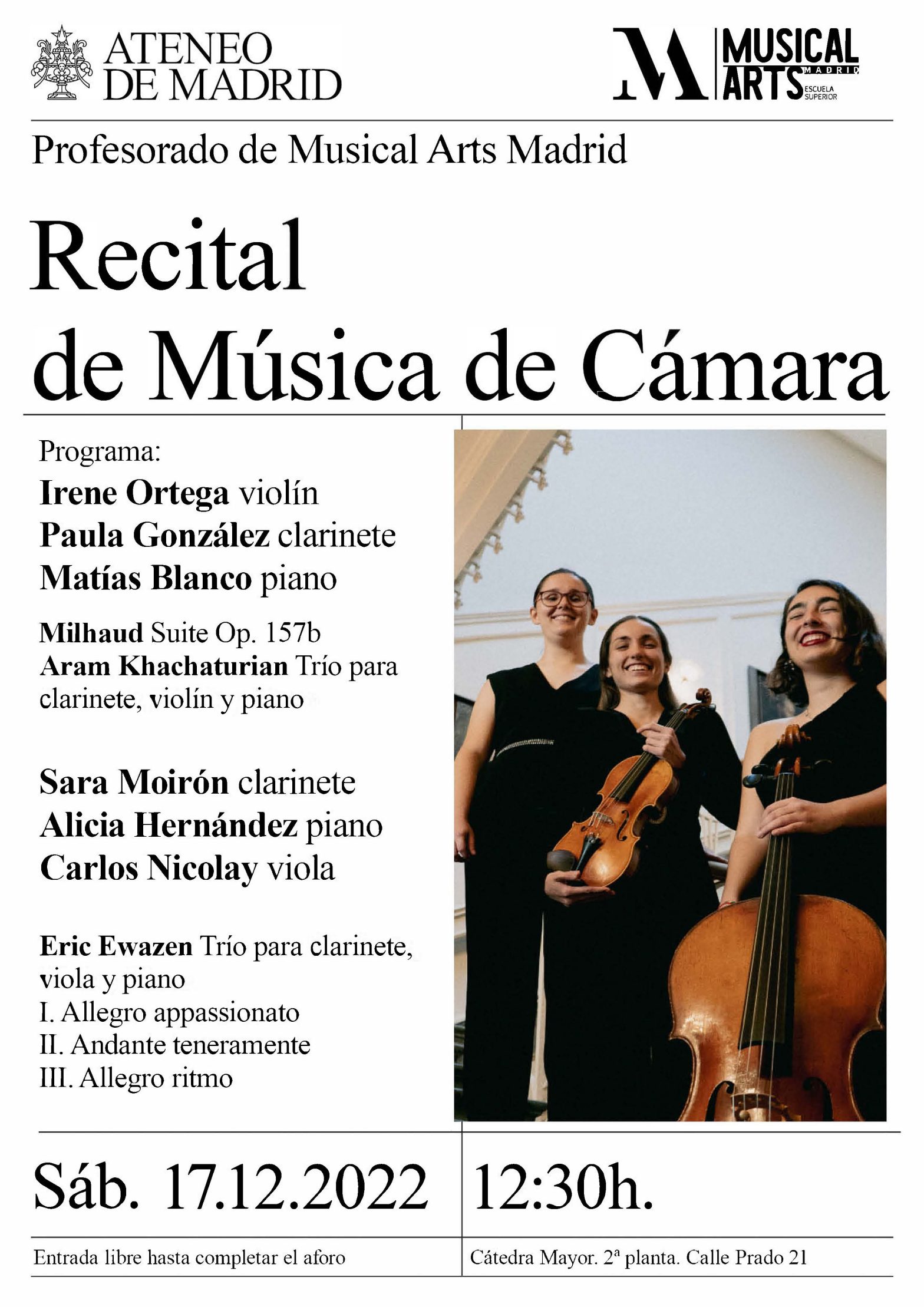 Recital de Música de cámara Alumnos Escuela Superior Musical Arts de Madrid. Obras de Milhaud, Khachaturian, y Eric Ewazen. PROGRAMA: