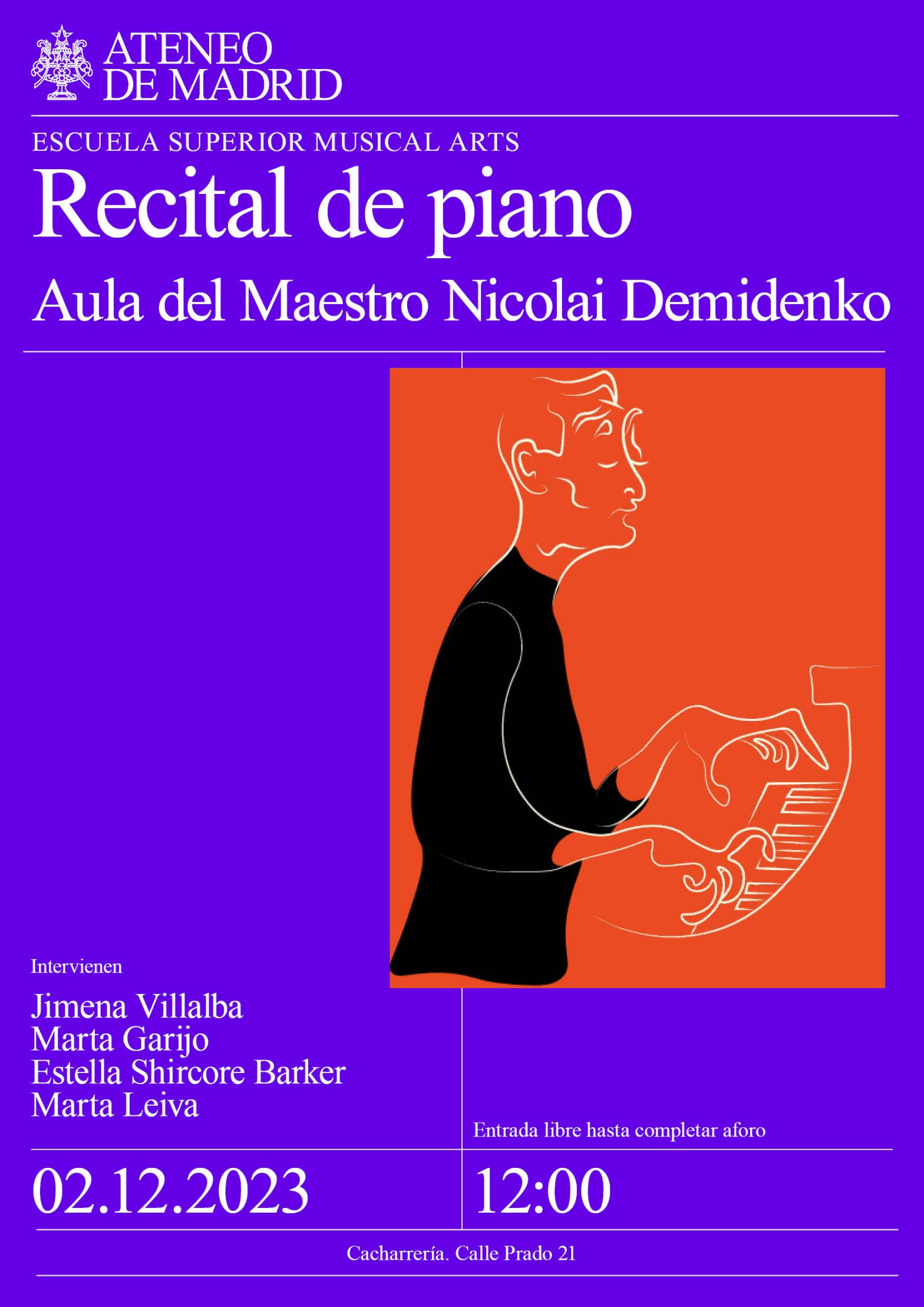 Aula del Maestro Nicolai Demidenko. Jimena Villalba, Marta Garijo, Estella Shircore Barker y Marta Leiva. Cacharrería. 12h.