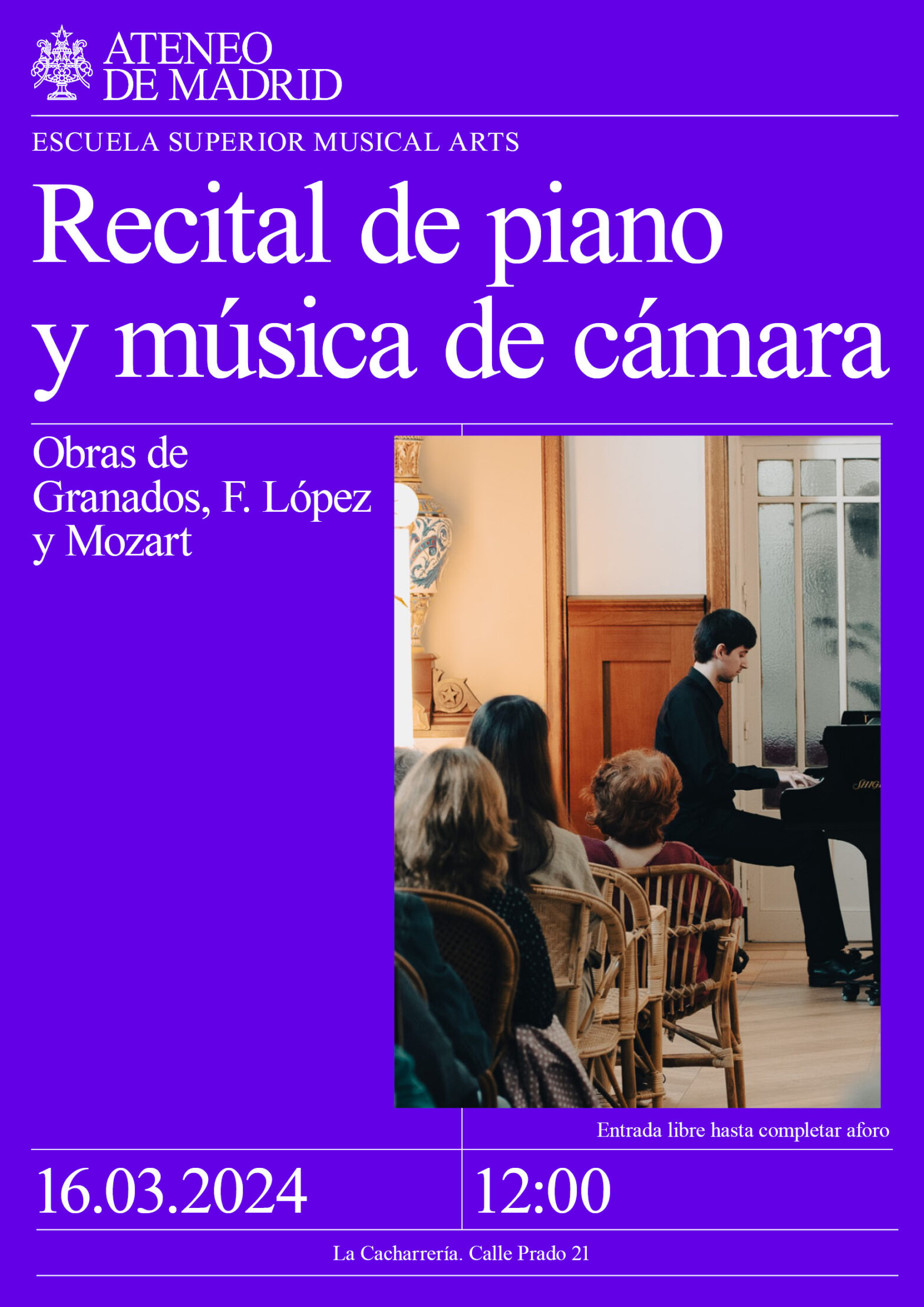 Obras de Granados, F.López y Mozart. La Cacharrería. 12:00h.