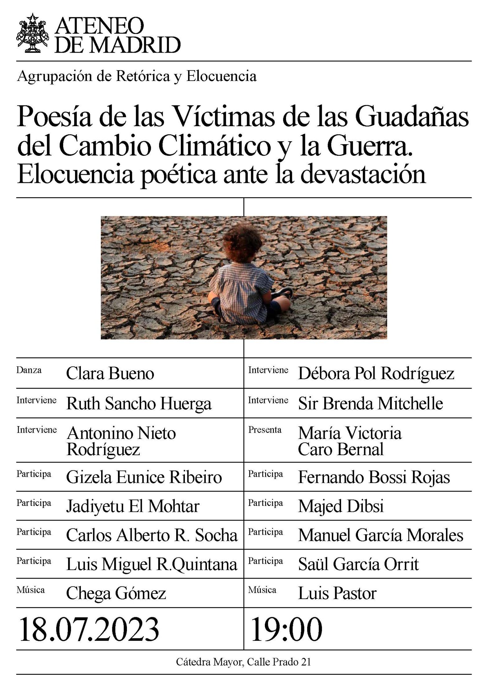Recital de Poetas: Poesía por las Víctimas de las Guadañas del Cambio Climático y la Guerra. Elocuencia poética ante la devastación. Acto solidario con la Cumbre de los Pueblos, Bruselas 2023. Día Internacional de Nelson Mandela