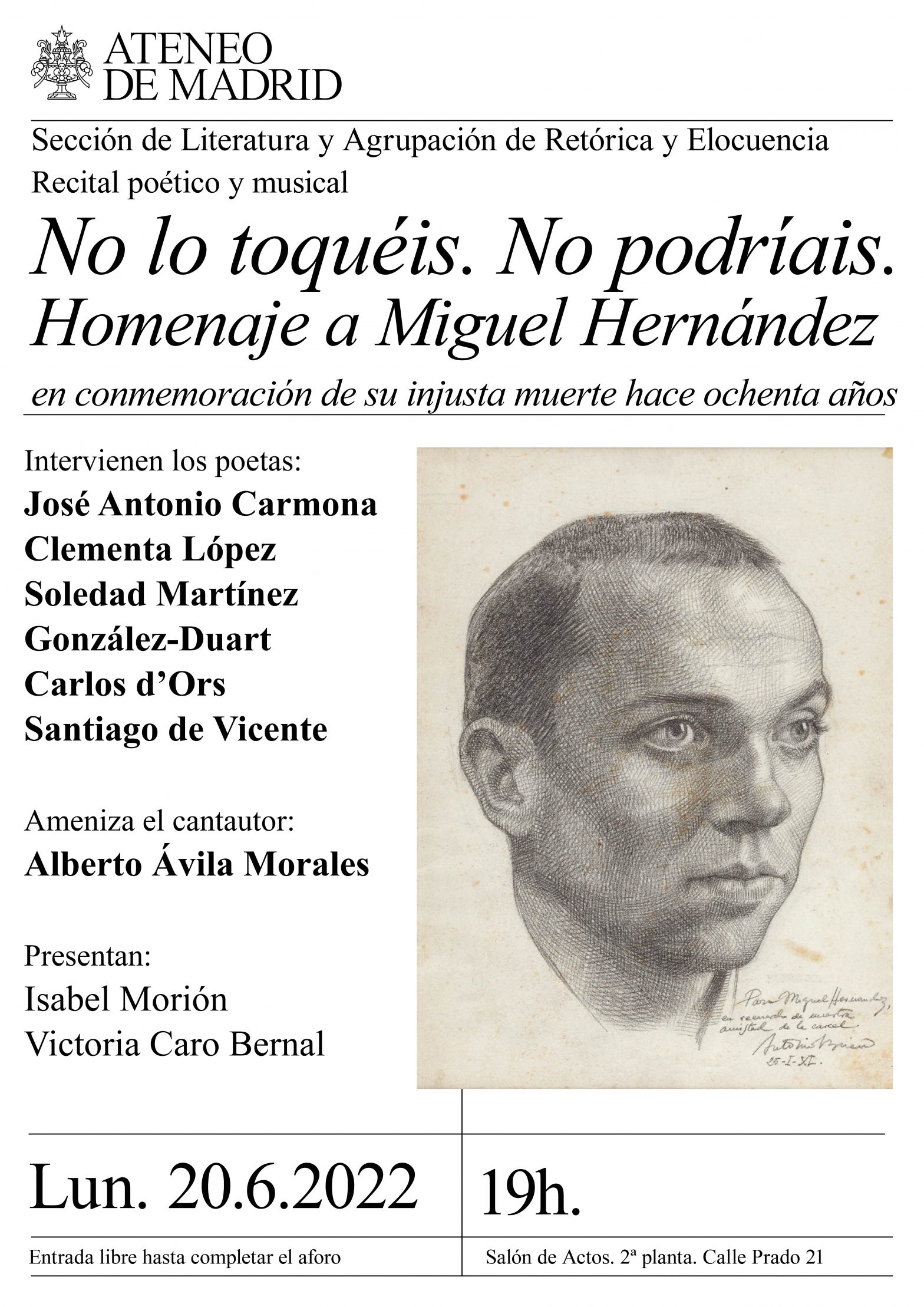 Recital poético y musical: No lo toquéis. No podríais. Homenaje a Miguel Hernández en conmemoración de su injusta muerte hace ochenta años