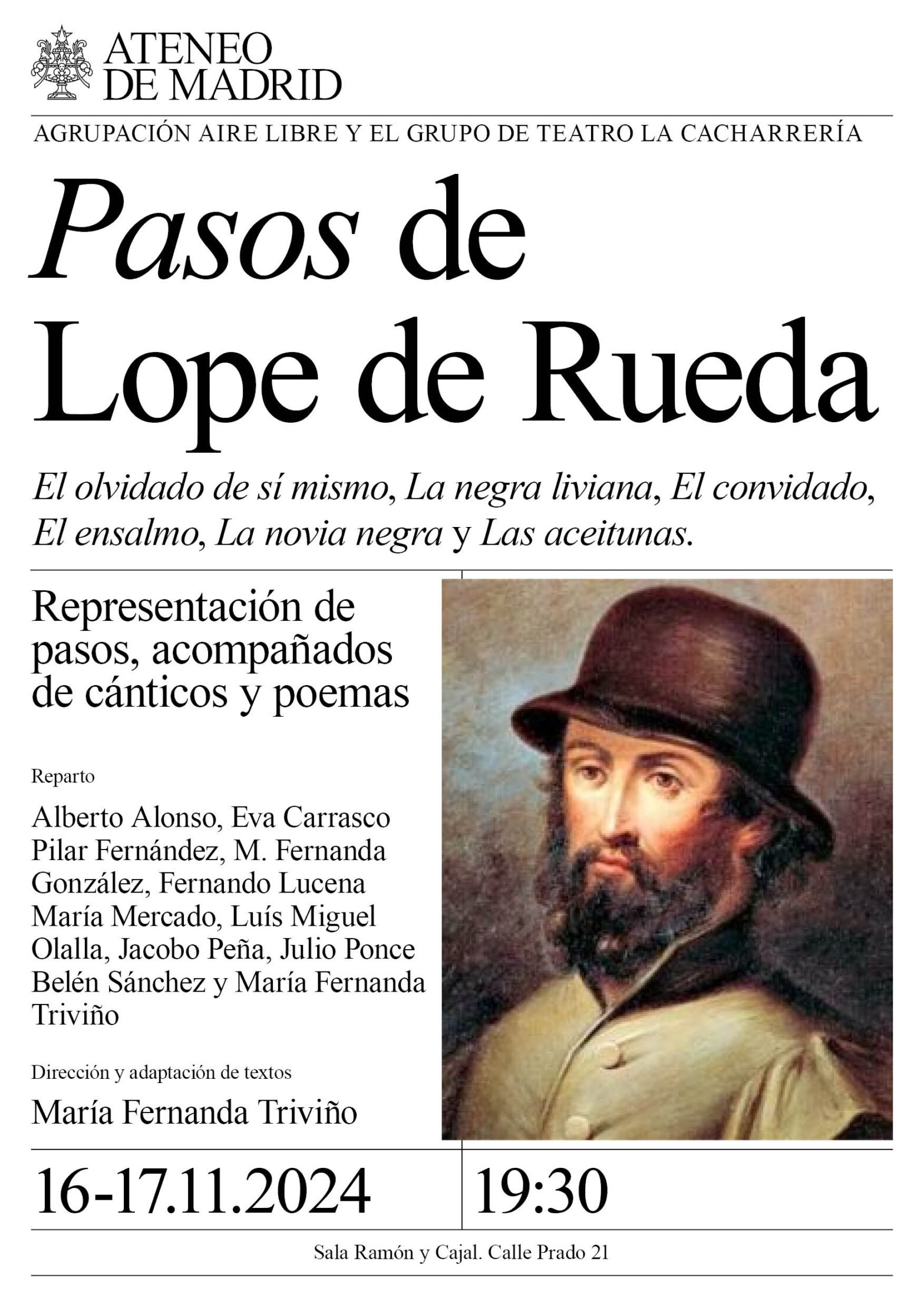 Agrupación Aire Libre y el Grupo de Teatro “La Cacharrería”. Se representan los siguientes Pasos: “El olvidado de sí mismo”; “La negra liviana”; “El convidado”; “El ensalmo”; “La novia negra” y ”Las aceitunas”. Acompañados de cánticos y poemas.
