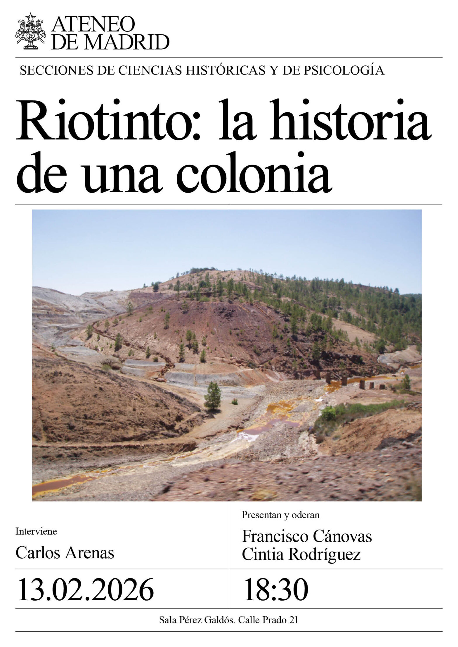 Secciones de Ciencias Históricas y de Psicología. Interviene: Carlos Arenas. Presentan y moderan: Francisco Cánovas y Cintia Rodríguez. Sala Pérez Galdós. 18:30h.