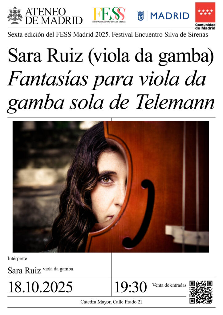 Intérprete: Sara Ruiz, viola da gamba. Cátedra Mayor. 19:30h.