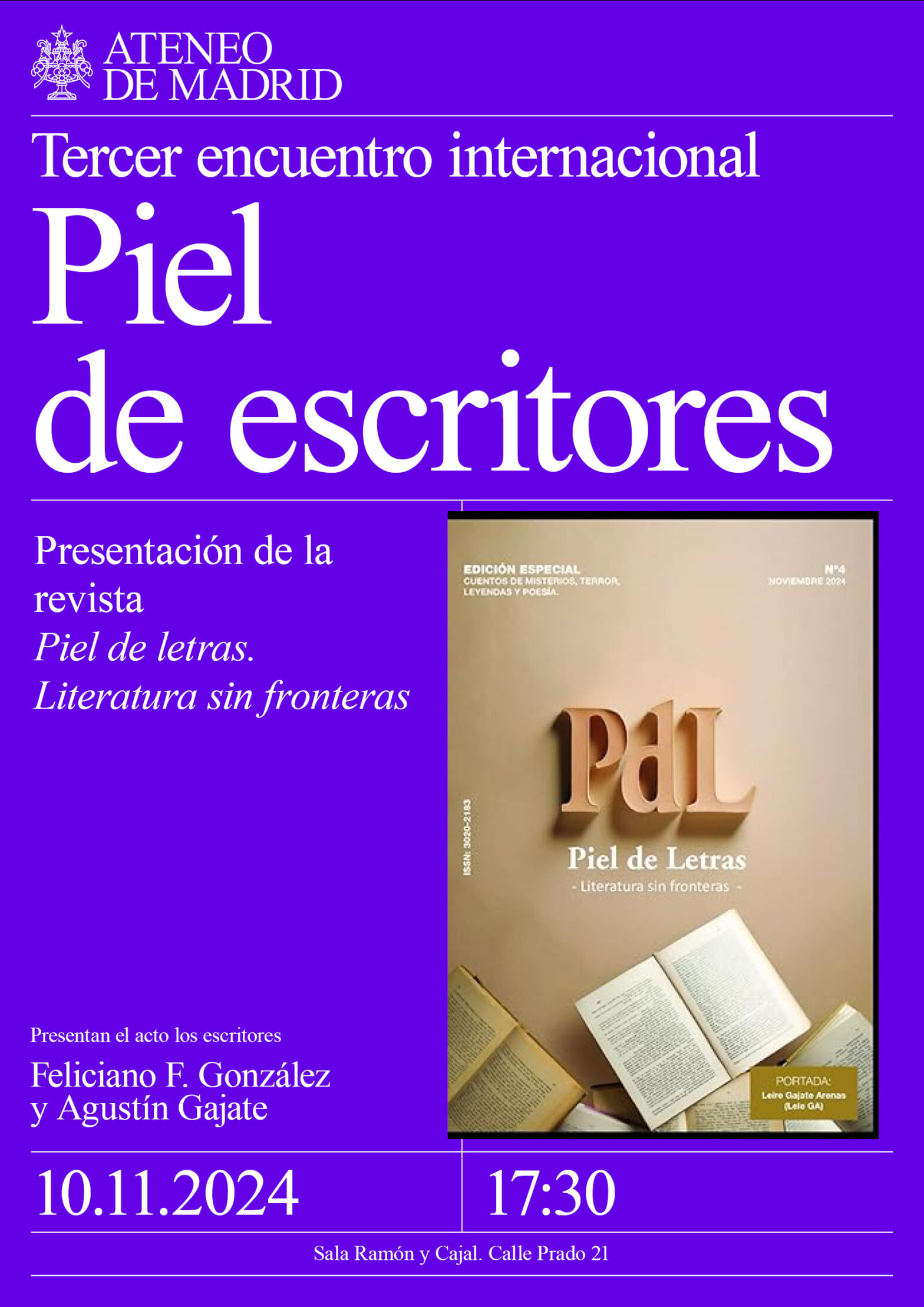 Presentan el acto los escritores Feliciano F. González y Agustín Gajate. Sala Ramón y Cajal. 17:30h.
