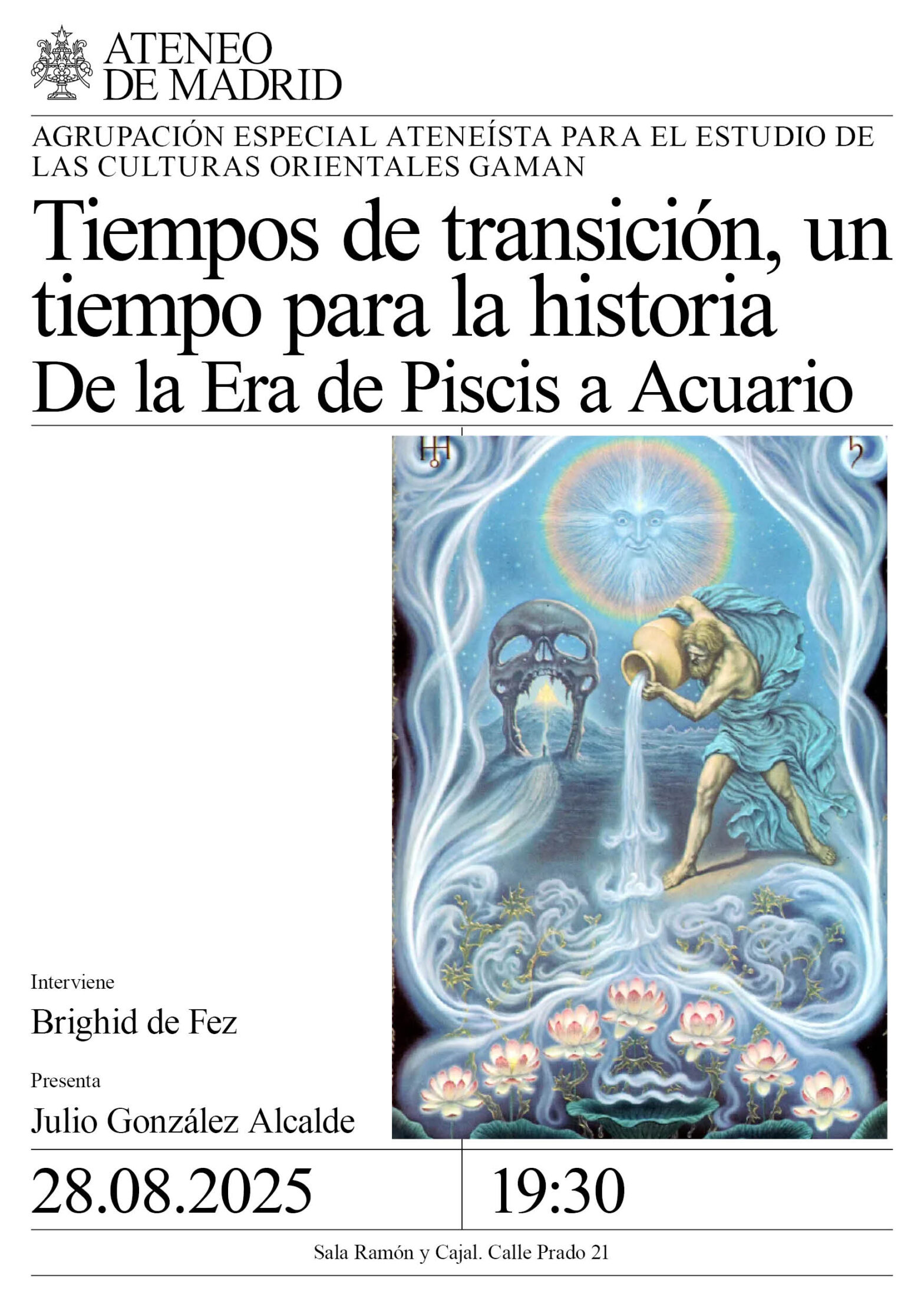 Agrupación especial ateneísta para el estudio de las Culturas Orientales GAMAN. Interviene: Brighid de Fez, self-made woman, astróloga, coach y divulgadora cultural. Presenta: Julio González Alcalde. Sala Ramón y Cajal. 19:30h.