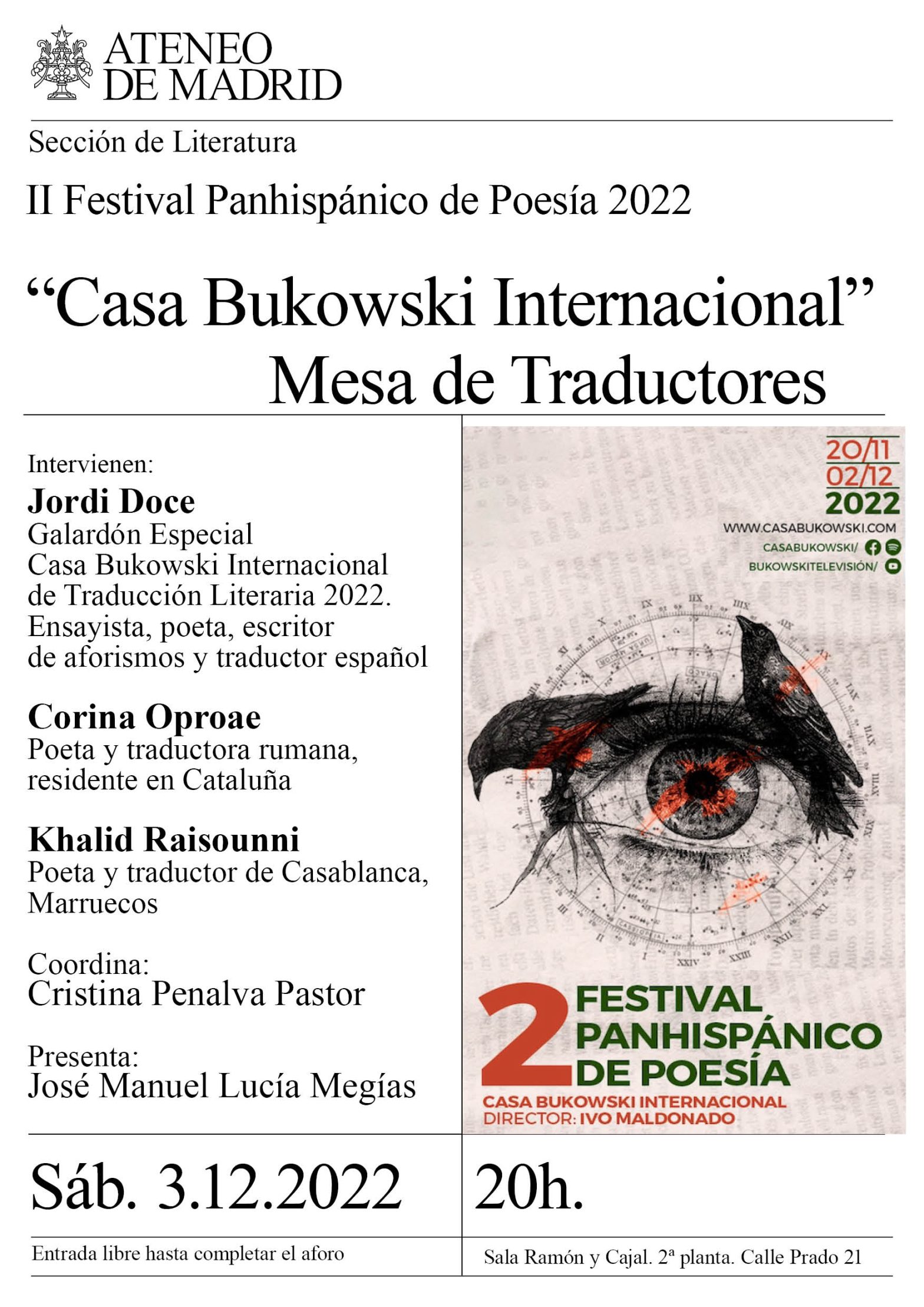 Traducir poesía. II Festival Panhispánico de Poesía 2022. «Casa Bukowski Internacional». Mesa de traductores.