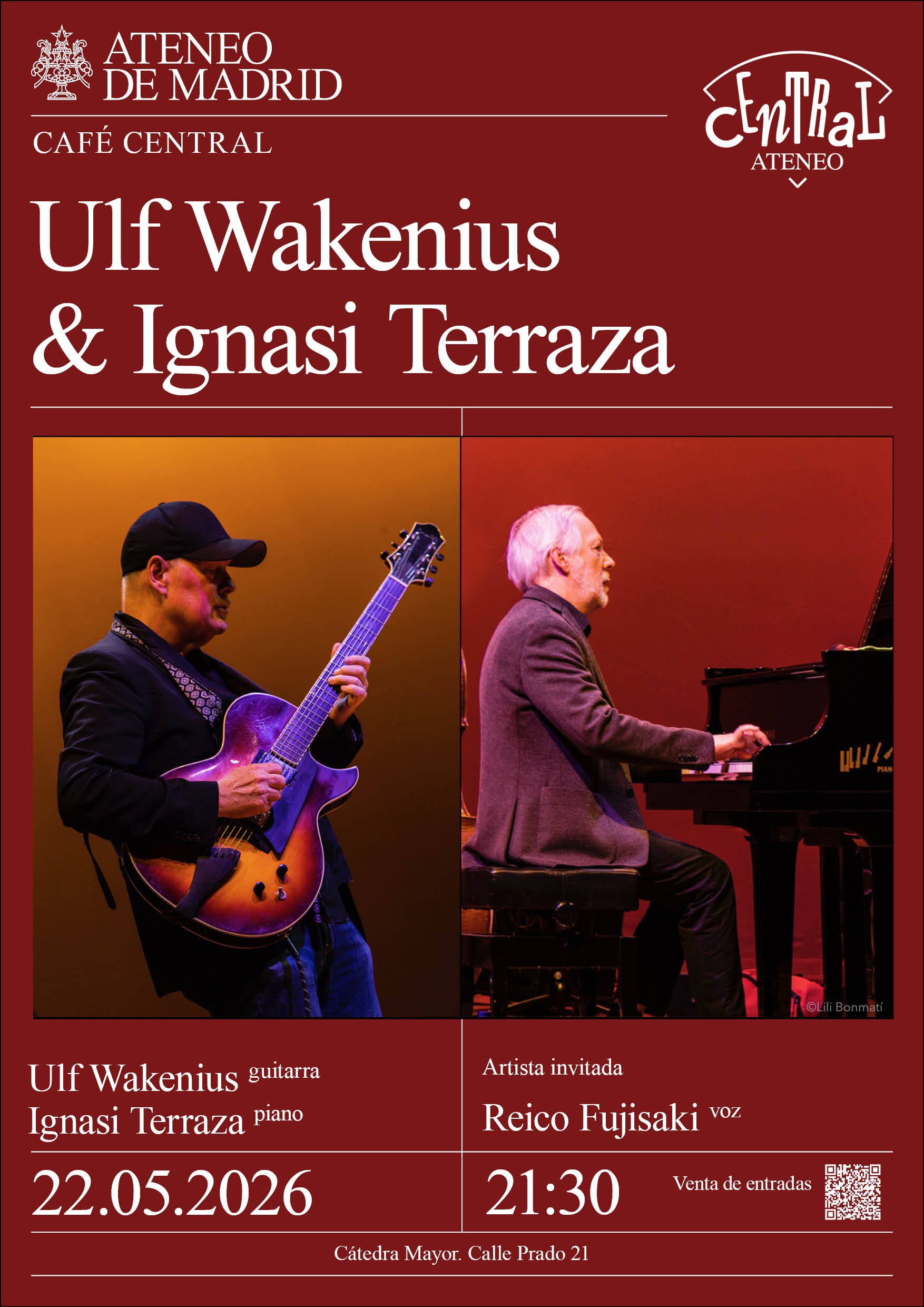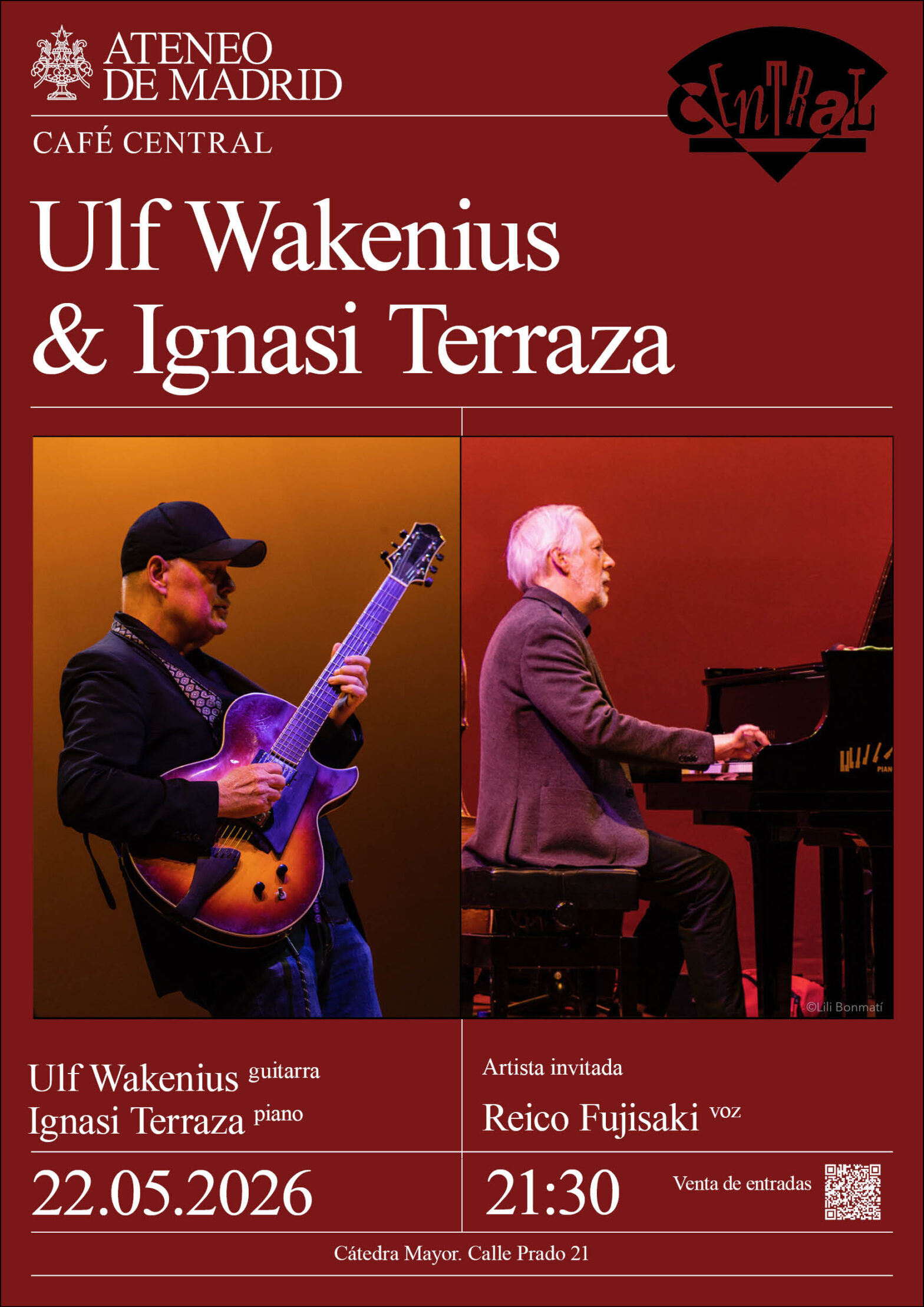 Ateneo – Café Central. Ulf Wakenius, guitarra e Ignasi Terraza, piano. Artista invitada: Reico Fujisaki, voz. Cátedra Mayor. 21:30h.