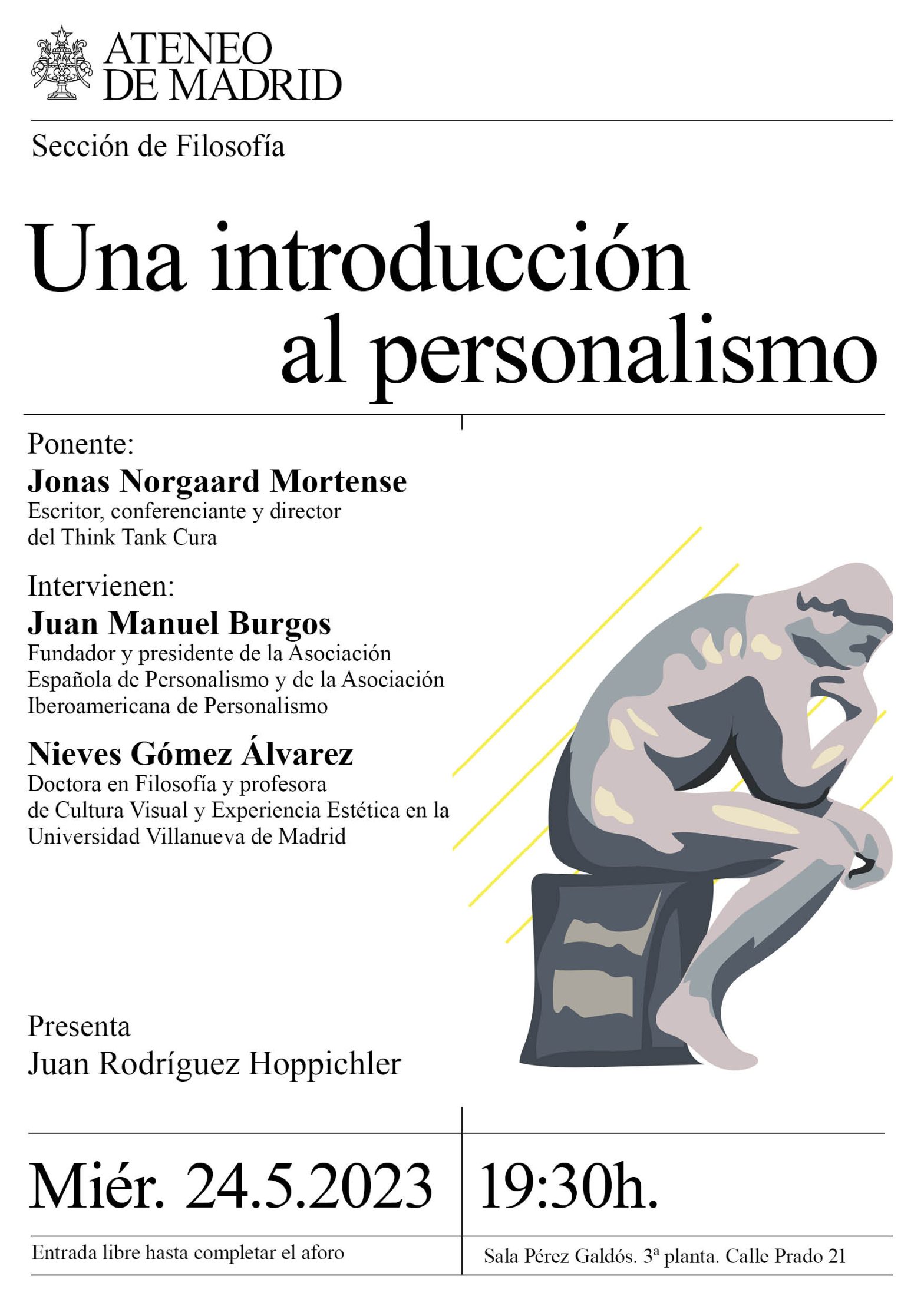 Española de Personalismo y de la Asociación Iberoamericana de Personalismo; Nieves Gómez Álvarez, doctora en Filosofía y profesora de Cultura Visual y Experiencia Estética en la Universidad Villanueva de Madrid. Presenta