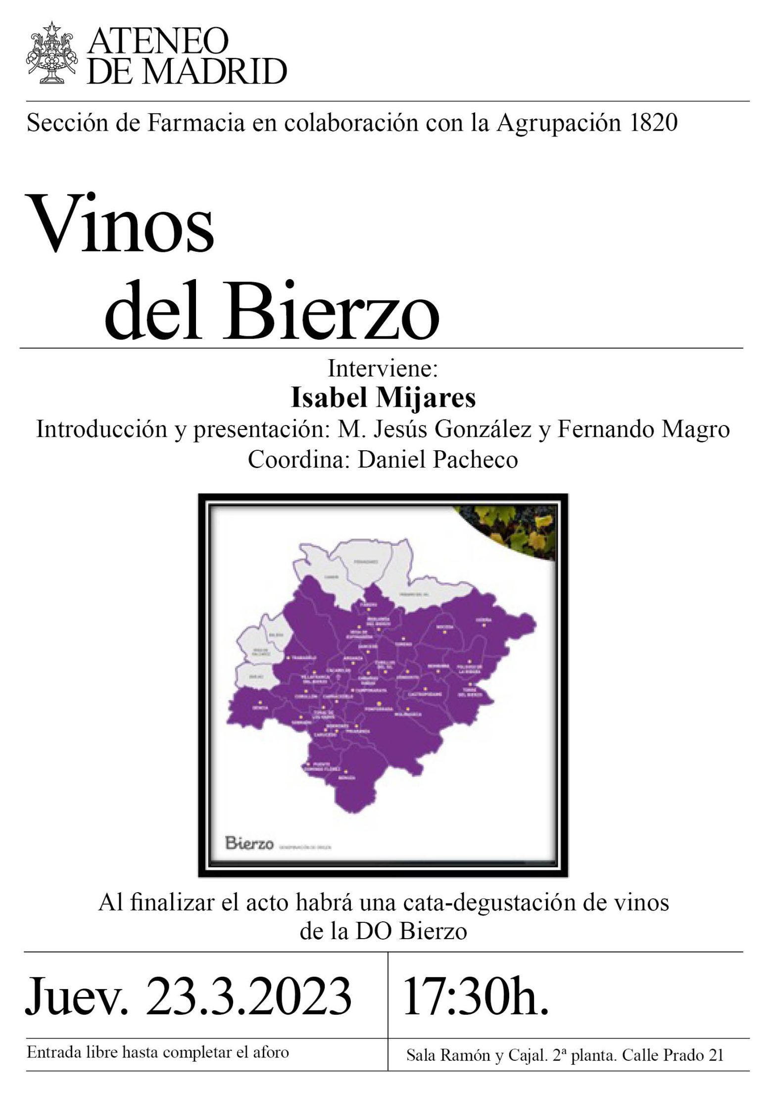 Sección de Farmacia. Interviene: Isabel Mijares. Introducen y presentan: M.ª Jesús González y Fernando Magro. Coordina el acto: Daniel Pacheco. Al finalizar el acto habrá una cata-degustación de vino de la DO Bierzo. Sala Ramón y Cajal. 17:30h.