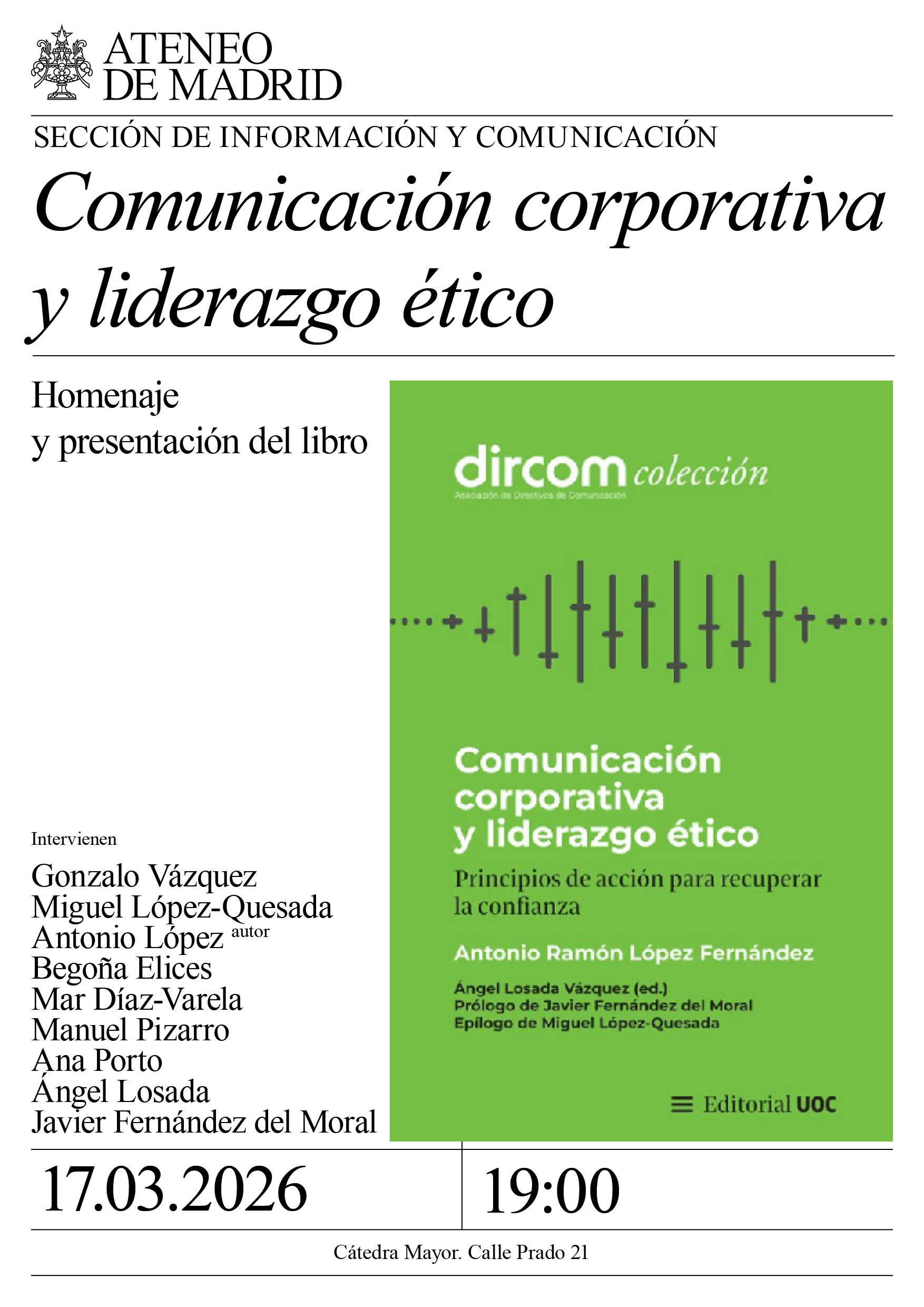 Venta de entradas (aquí). Socios código de descuento en el Área del Socio. Fundación Più Mosso. Ciclo Grandes intérpretes del Ateneo. Curriculum y programa (ver). La extraordinaria pianista catedrática de piano del RCSMM. Cátedra Mayor. 19:30h.