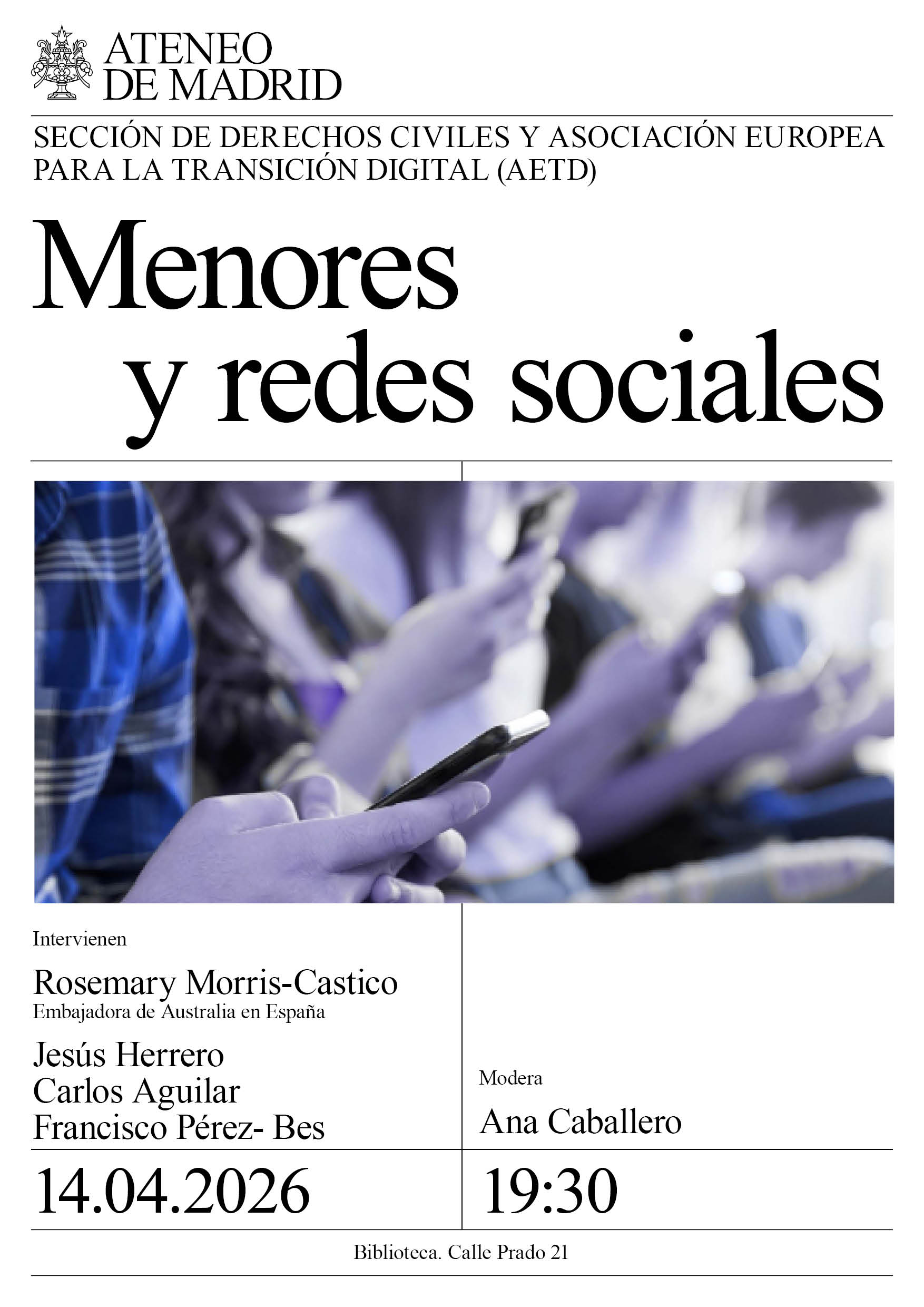 Sección de Derechos Civiles. Intervienen: Rosemary Morris-Castico, embajadora de Australia en España; Jesús Herrero, director General de Red.es; Carlos Aguilar, consejero de la CNMC; y Francisco Pérez- Bes, adjunto a Presidencia de la AEPD. Presenta: Concepción Gutiérrez. Modera: Ana Caballero, vicepresidenta de la AETD. Biblioteca. 19:30h.