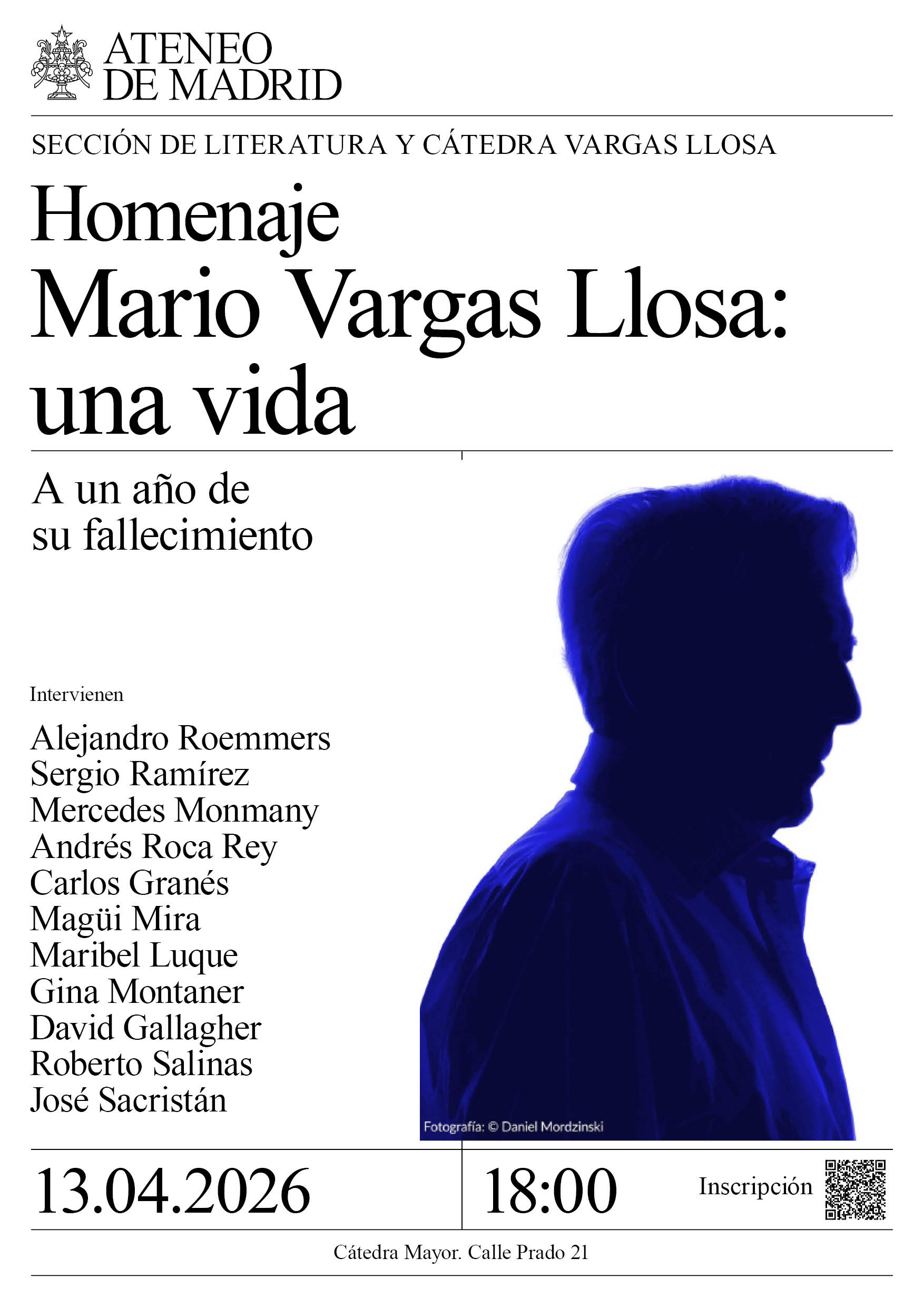 Necesaria inscripción previa (aquí) Sección de Literatura y Cátedra Vargas Llosa. Intervienen: Alejandro Roemmers, Sergio Ramírez, Mercedes Monmany, Andrés Roca Rey, Carlos Granés, Magüi Mira, Maribel Luque, Gina Montaner, David Gallagher, Roberto Salinasy José Sacristán. Cátedra Mayor. 18:00h.