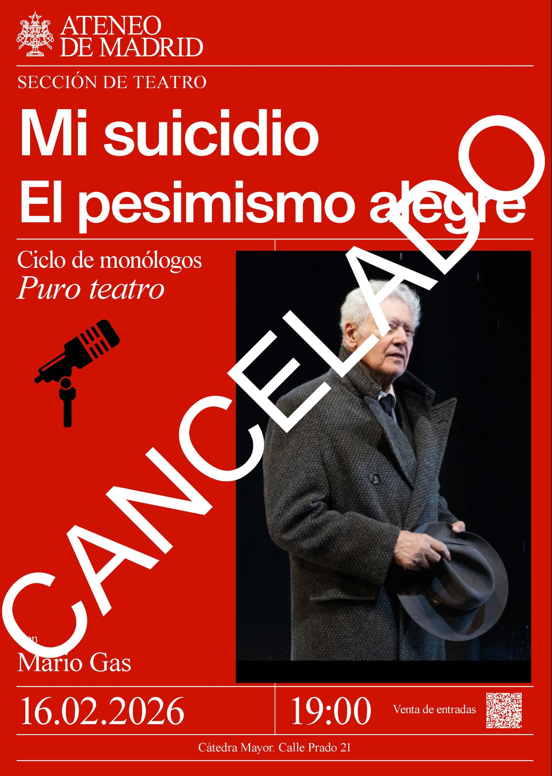 Cancelado CANCELADO. Ciclo de monólogos «Puro teatro». Mi suicidio El pesimismo alegre, con Mario Gas