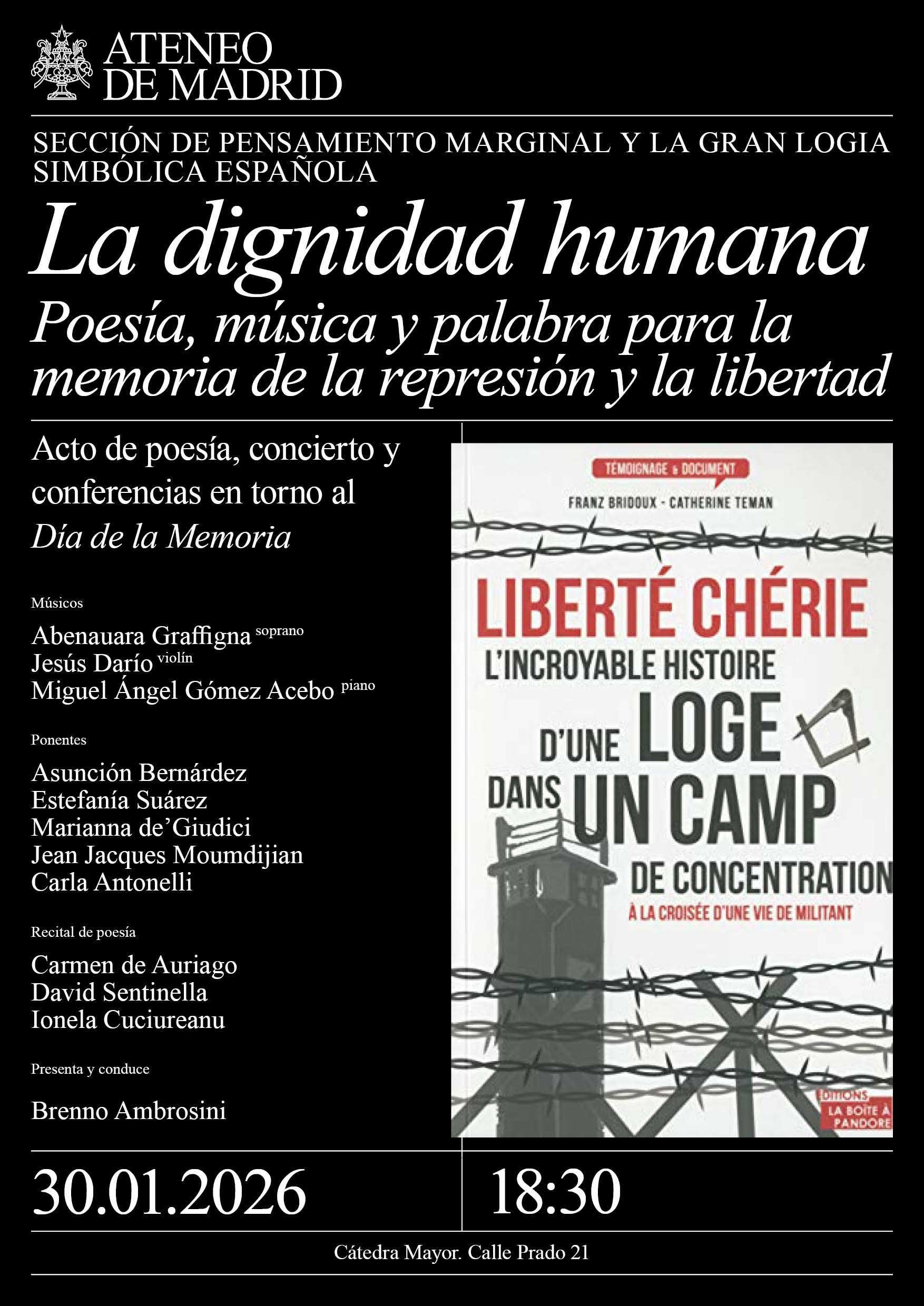 Venta de entradas (aquí). Socios, código descuento en el Área del Socio. Tala Producciones. Intérpretes: Luis Antonio Muñoz, dirección musical y comentarios; Fran Braojos, tenor; Abel Iturraga, piano; y Vicente Canseco, recitador. Camerata Ultreia. La entrada incluirá una copa de vino español. La Cacharrería. 12:00h.