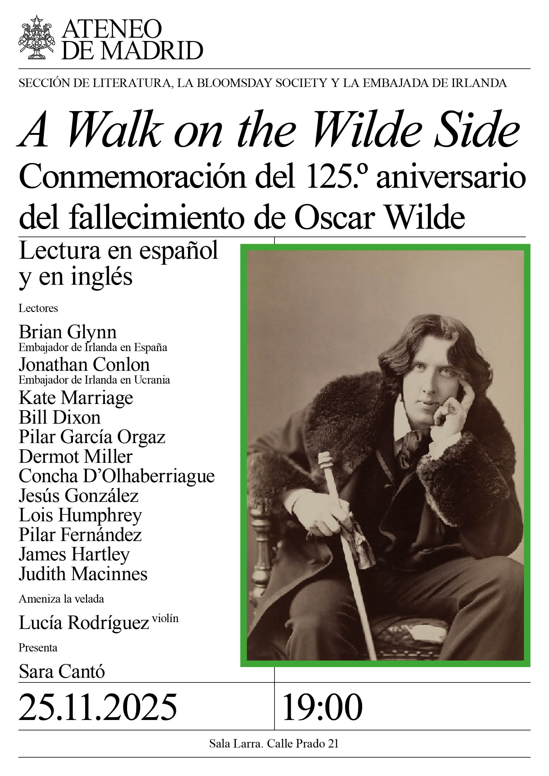 «A Walk on the Wilde Side». Conmemoración del 125.º aniversario del fallecimiento de Oscar Wilde