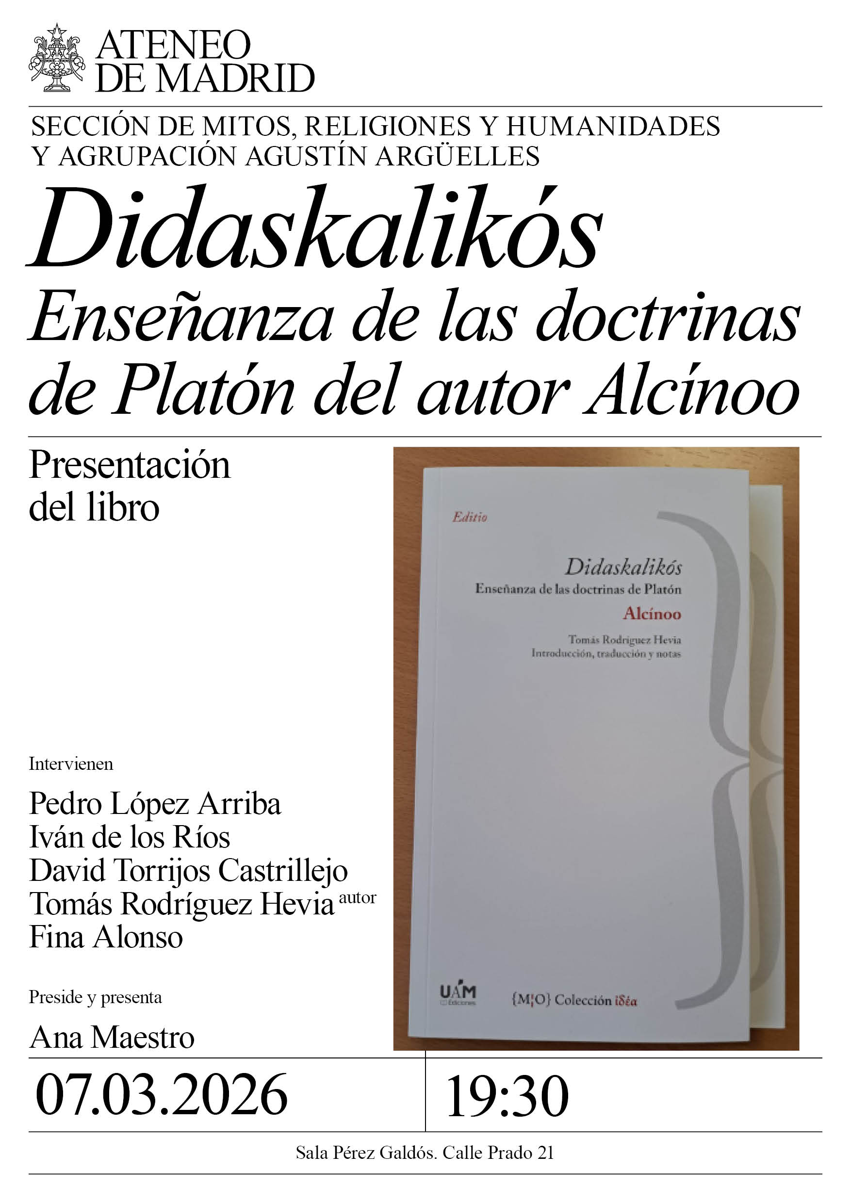 Presentación del libro «Didaskalikós Enseñanza de las doctrinas de Platón del autor Alcínoo»