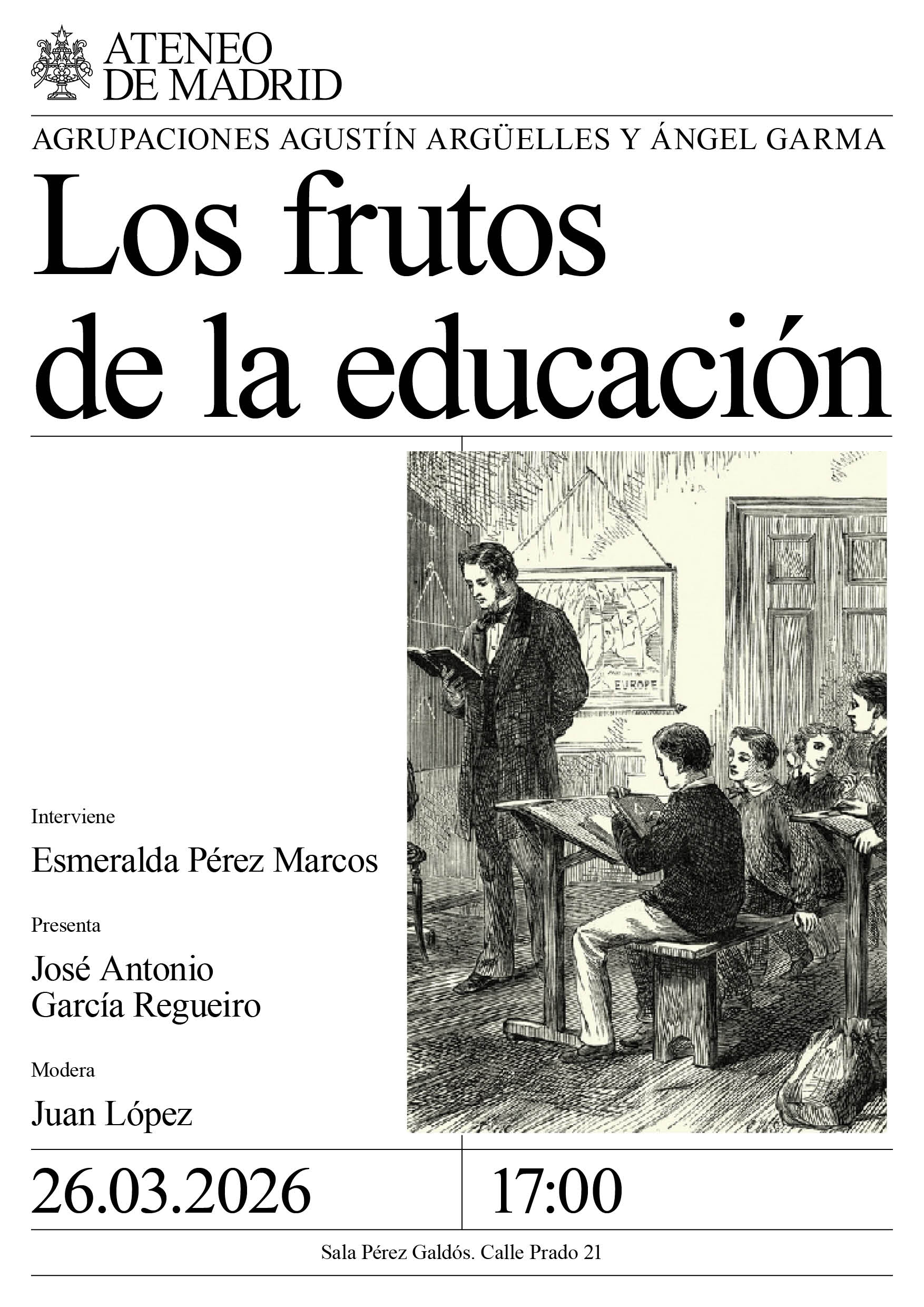 Agrupaciones Agustín Argüelles y Ángel Garma. Interviene: Esmeralda Pérez Marcos, escritora. Presenta: José Antonio García Regueiro. Modera: Juan López. Sala Pérez Galdós. 17:00h.