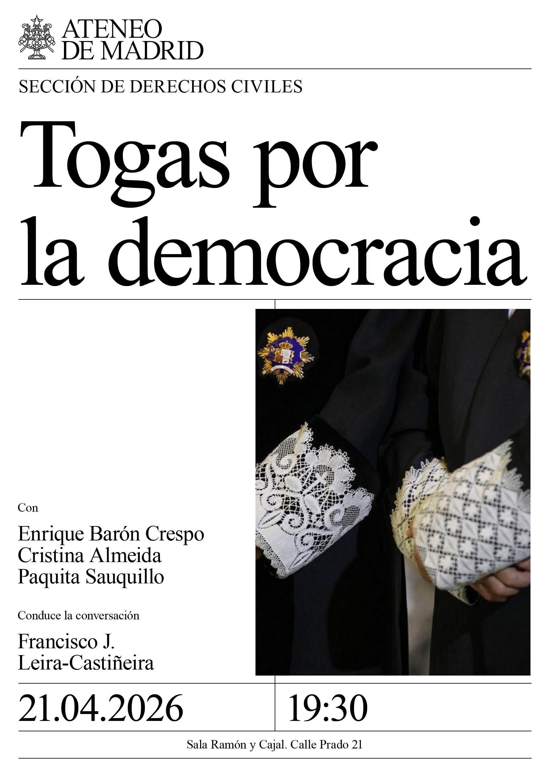 Sección de Derechos Civiles. Con: Enrique Barón Crespo, Cristina Almeida y Paquita Sauquillo. Conduce la conversación: Francisco J. Leira-Castiñeira, historiador y autor de Retrato de la Transición. La memoria que escondimos en el desván, siglo XXI. Sala Ramón y Cajal. 19:30h.