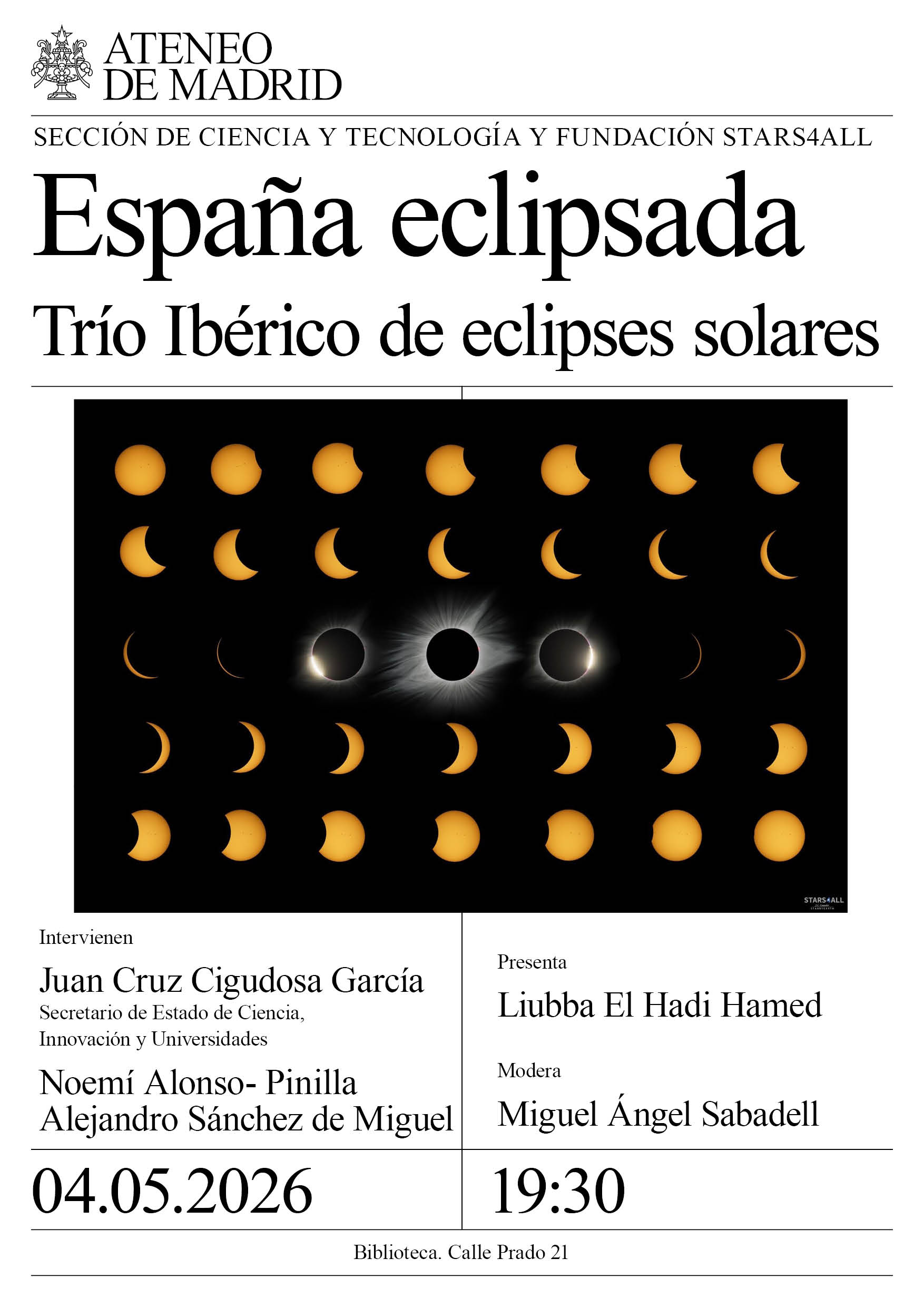 Sección de Ciencia y Tecnología y Fundación Stars4all. Intervienen: Juan Cruz, secretario de Estado de Ciencia, Innovación y Universidades; Noemí Alonso- Pinilla, física del Cosmos; Alejandro Sánchez de Miguel, director …