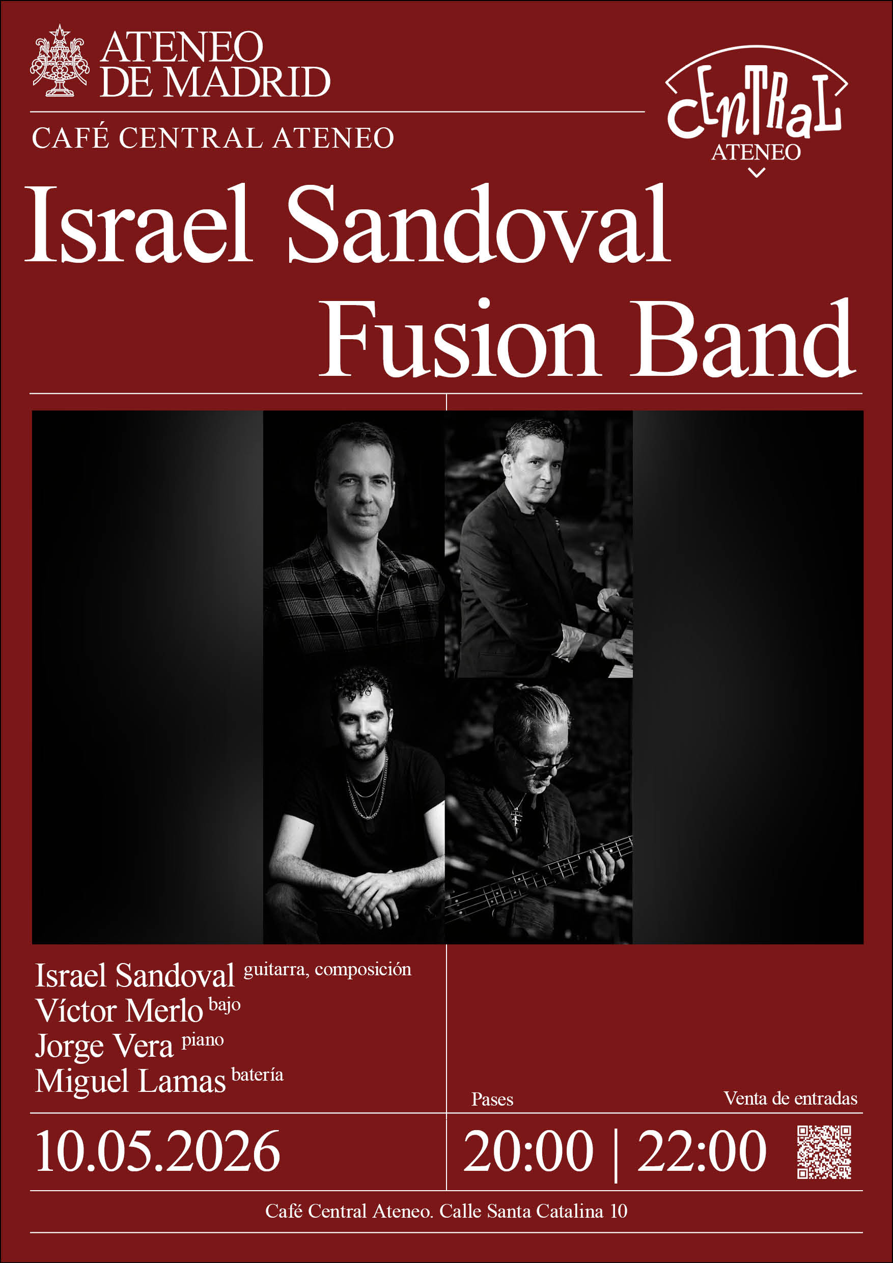 Venta de entradas (aquí). Socios, código descuento en el Área del Socio Café Central Ateneo. Israel Sandoval, guitarra, composición; Víctor Merlo, bajo; Jorge Vera, piano; y Miguel Lamas, batería. Calle …