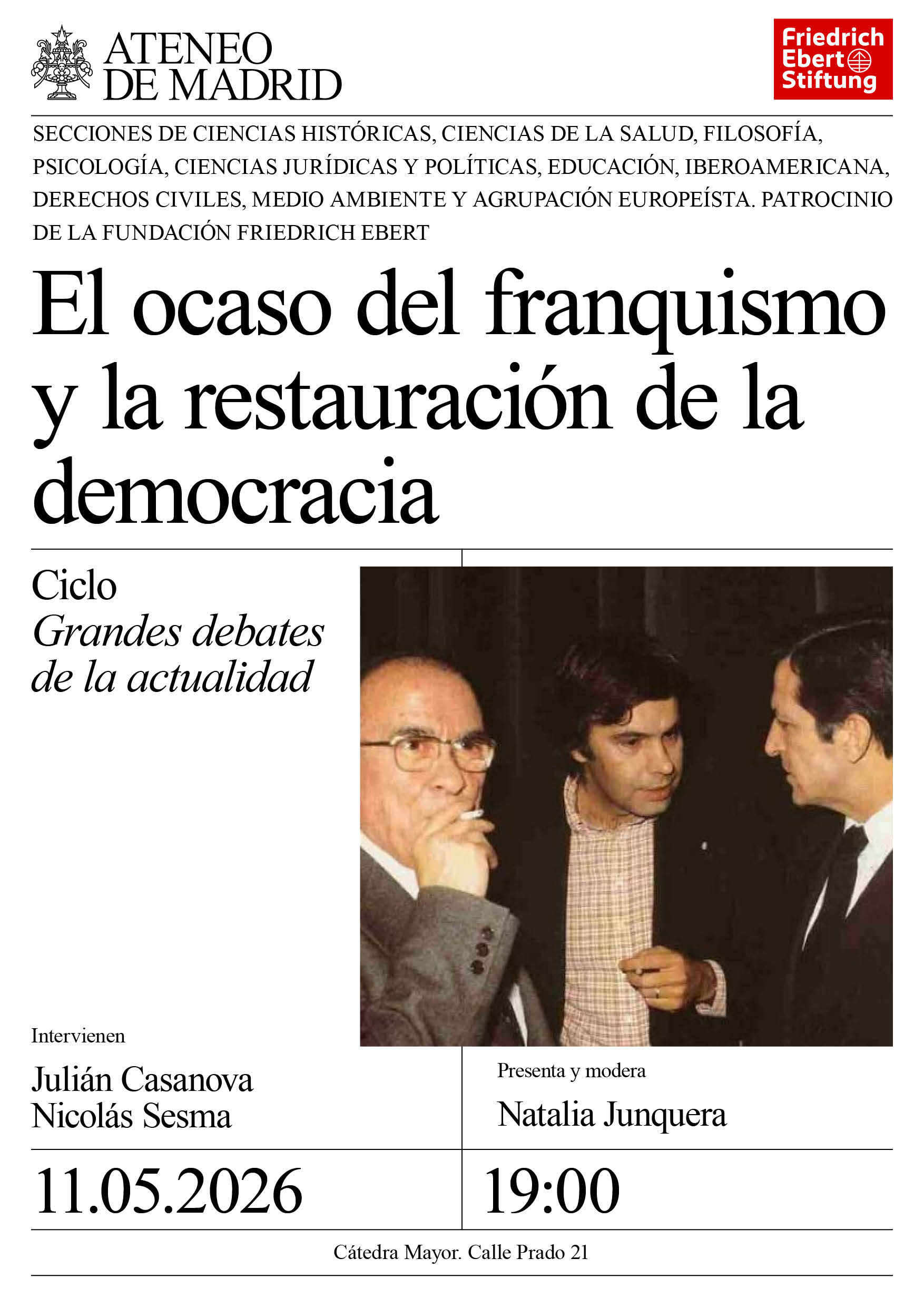 Agrupación Ateneísta Juan Negrín. Interviene: Pedro García Bilbao, profesor de universidad y presidente a la asociación Al Servicio de la República. Presenta: Miguel Pastrana. Sala Ramón y Cajal. 19:30h.