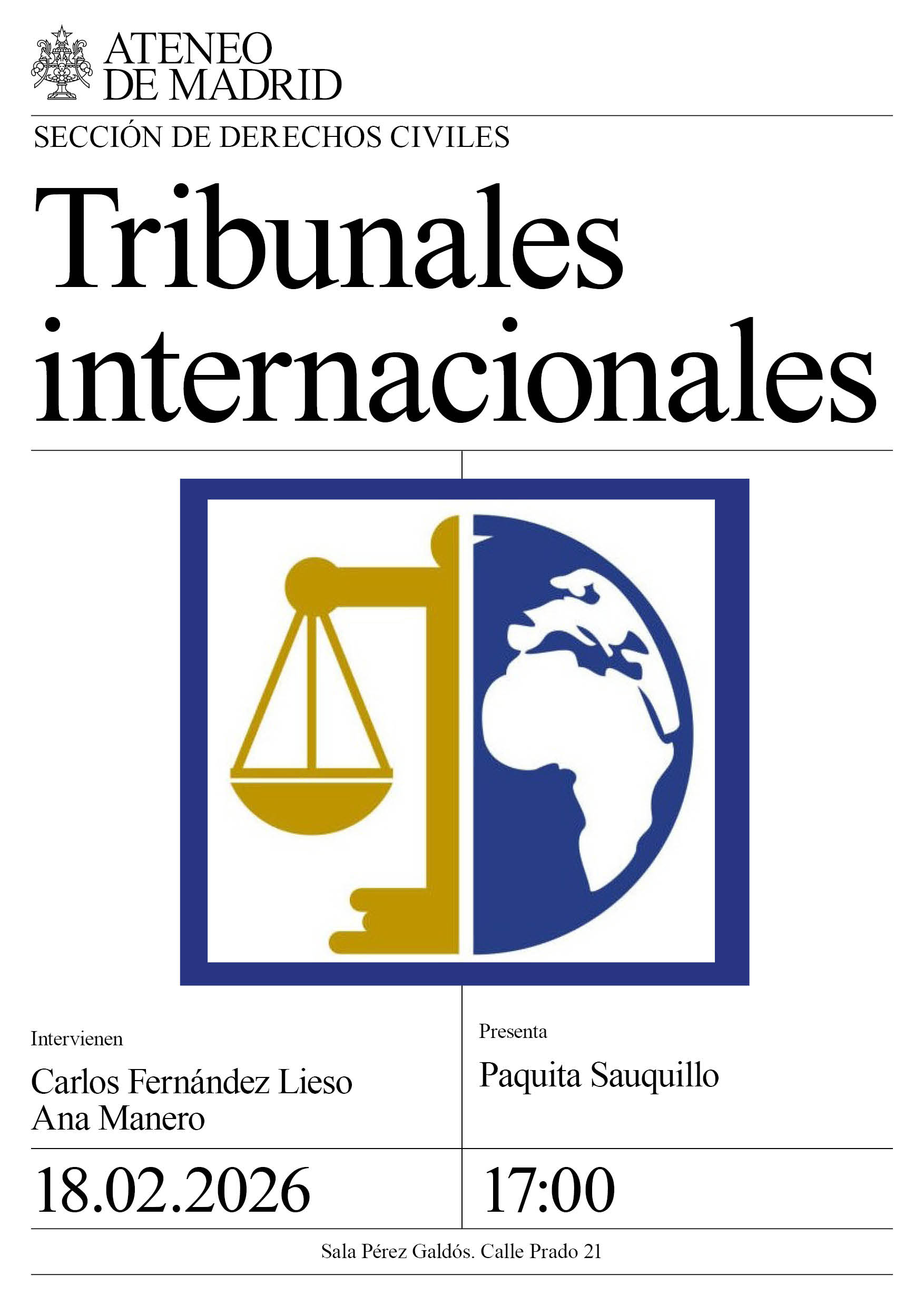 Sección de Derechos Civiles. Intervienen: Carlos Fernández Lieso y Ana Manero. Presenta: Paquita Sauquillo. Sala Pérez Galdós. 17:00h.
