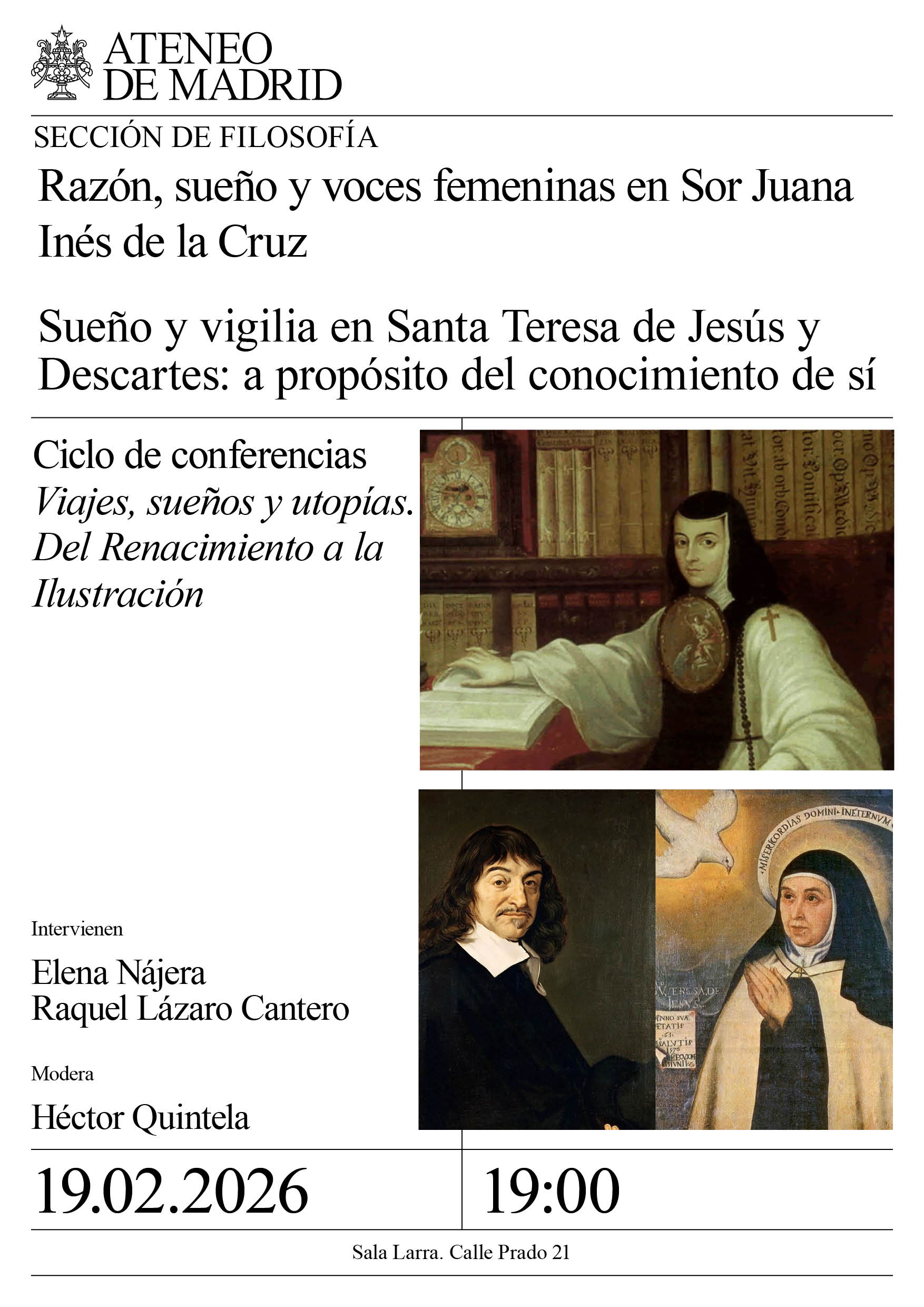 Sección de Filosofía. Ciclo de conferencias Viajes, sueños y utopías. Del Renacimiento a la Ilustración. Elena Nájera, Universidad de Alicante y Raquel Lázaro Cantero, Universidad de Navarra. Modera: Héctor Quintela, …