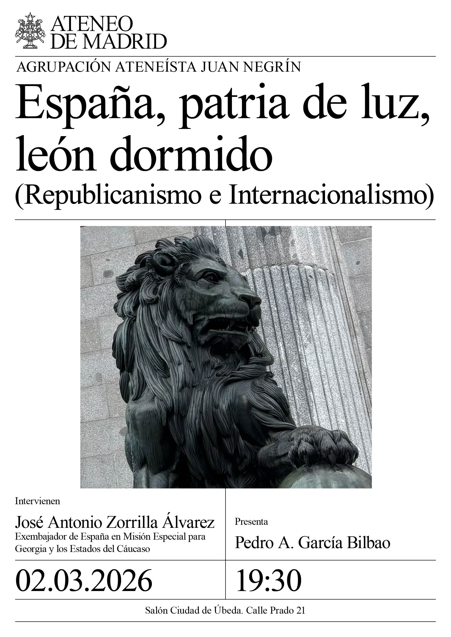 Agrupación Ateneísta Juan Negrín. Interviene: José Antonio Zorrilla Álvarez, exembajador de España en Misión Especial para Georgia y los Estados del Cáucaso. Presenta: Pedro A. García Bilbao. Salón Ciudad de …